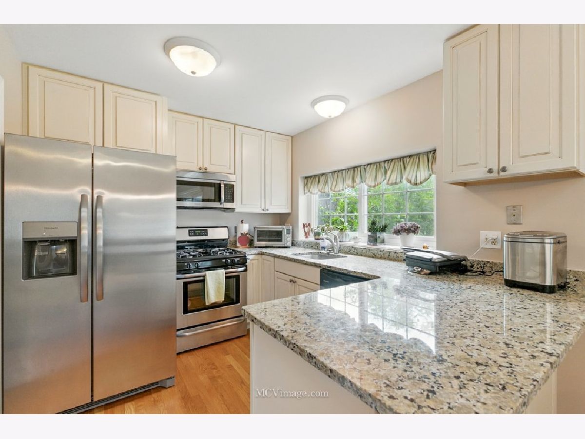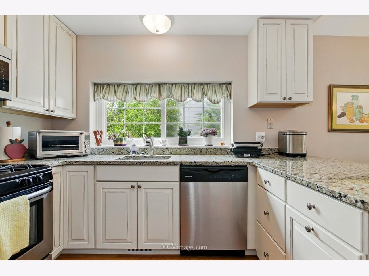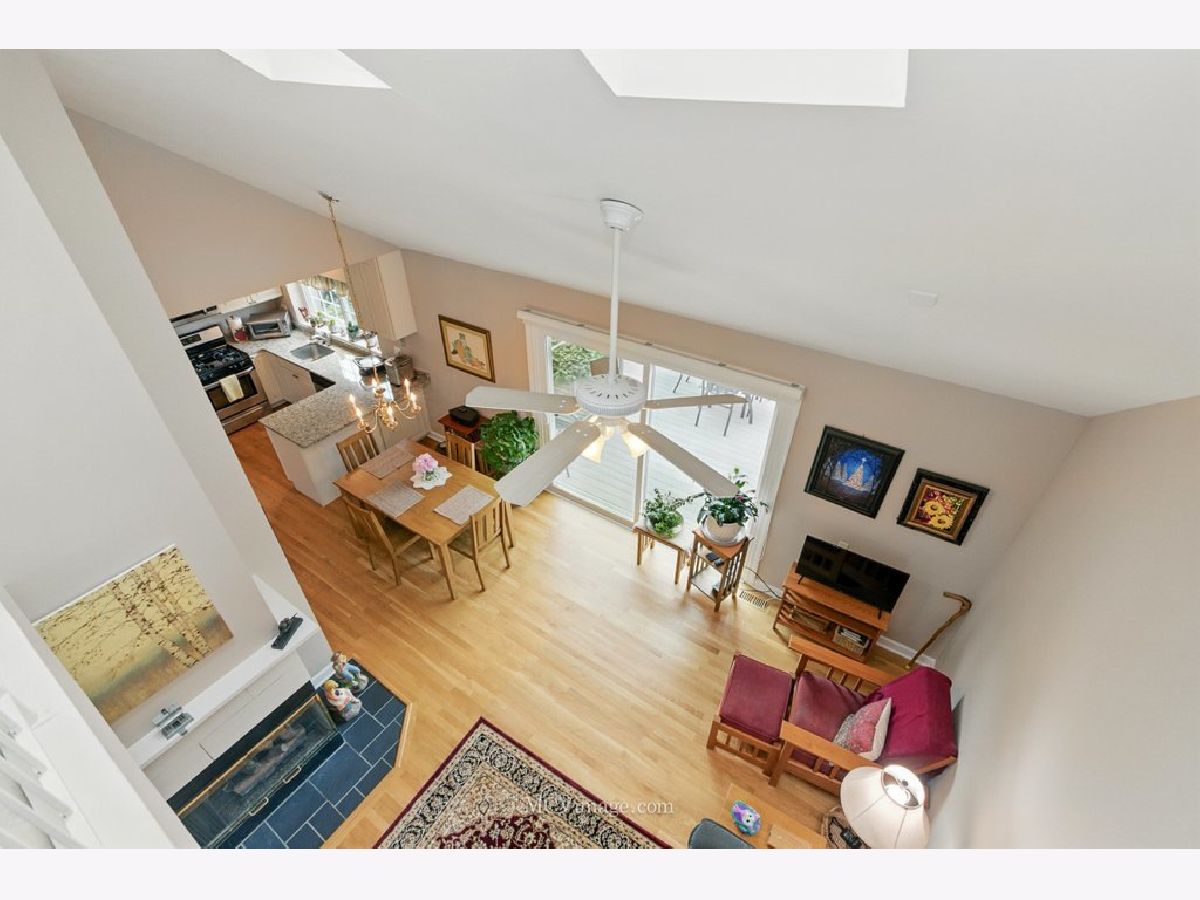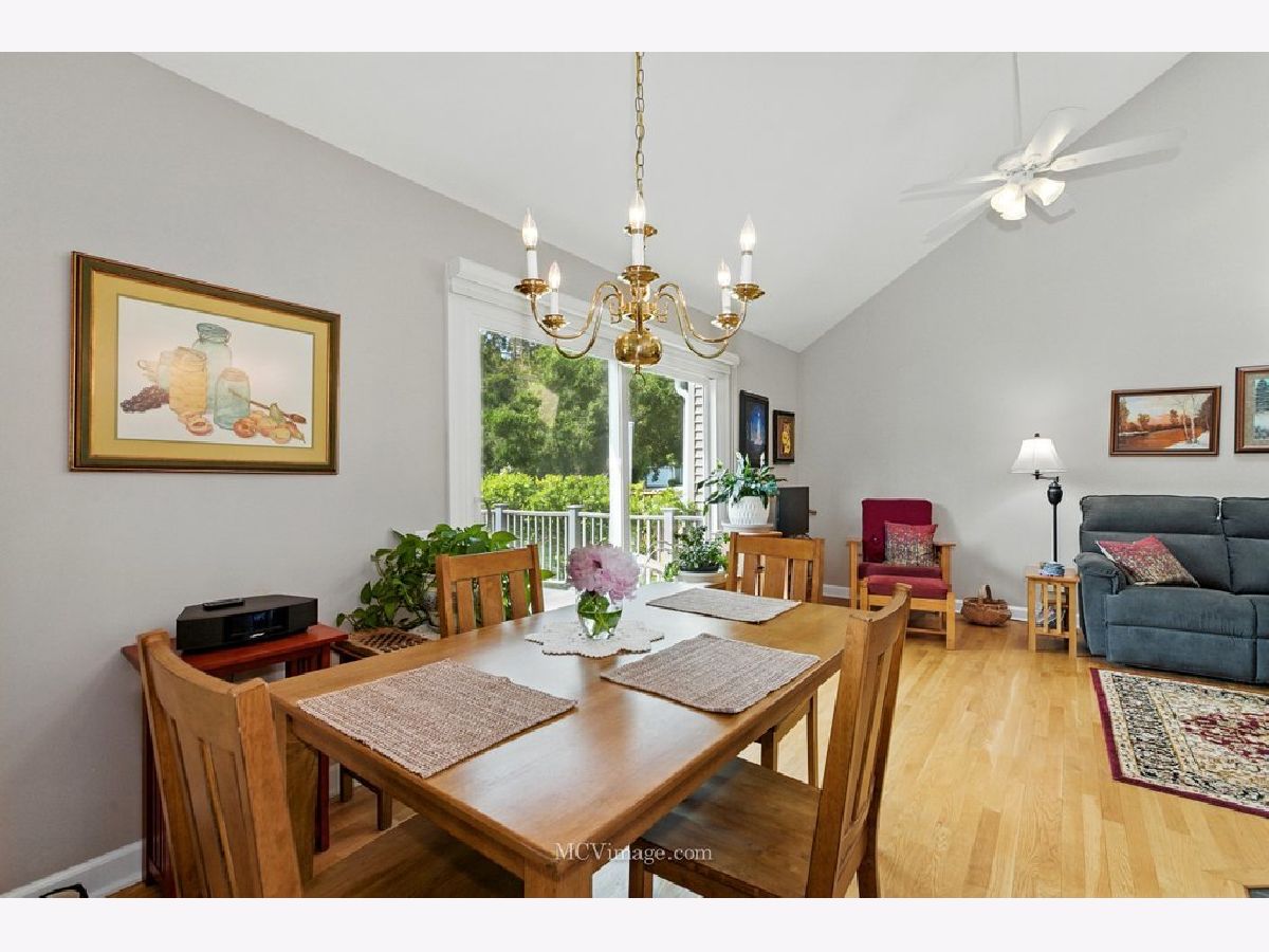 Beautiful 2 bedroom ( 2nd bedroom is a loft), one bath townhome in desirable Copper Oaks east of Fox River. First floor features living/dining room open floor plan, master bedroom , full bathroom ,hardwood floors, cathedral ceiling, two skylights, gas fireplace, updated windows, sliding door leading to a large deck and backyard. Gorgeous updated kitchen with lots of storage, pantry, granite countertops and stainless steel appliances (fridge 2024). First floor laundry room leading to one car attached garage. Carpeted second floor features spacious loft bedroom and a walk in closet .New furnace , A/C, hot water heater, toilet were installed in 2023. Low HOA fees $235 per month include common insurance, exterior maintenance, lawn care. Home is located in a peaceful, walkable community with easy access to shopping, dining and parks. Move-in-ready