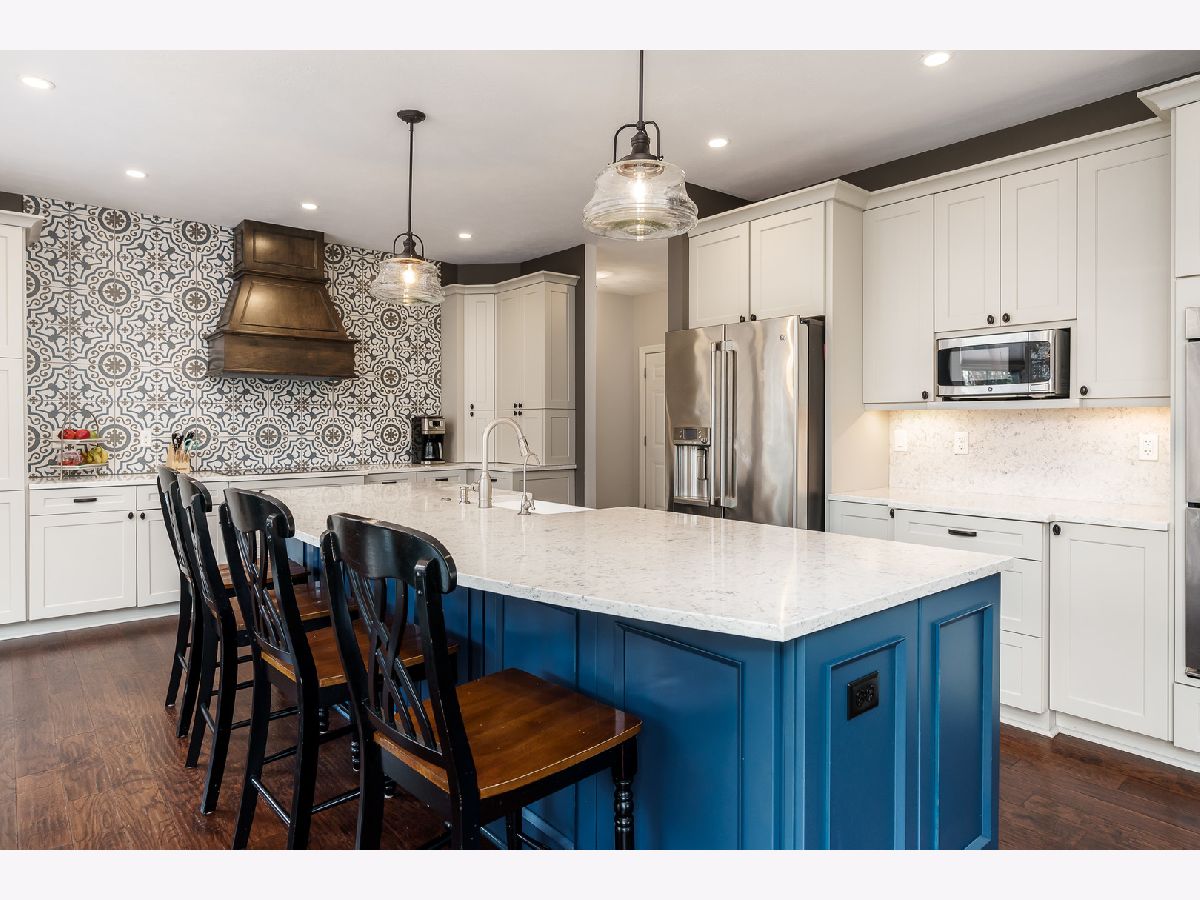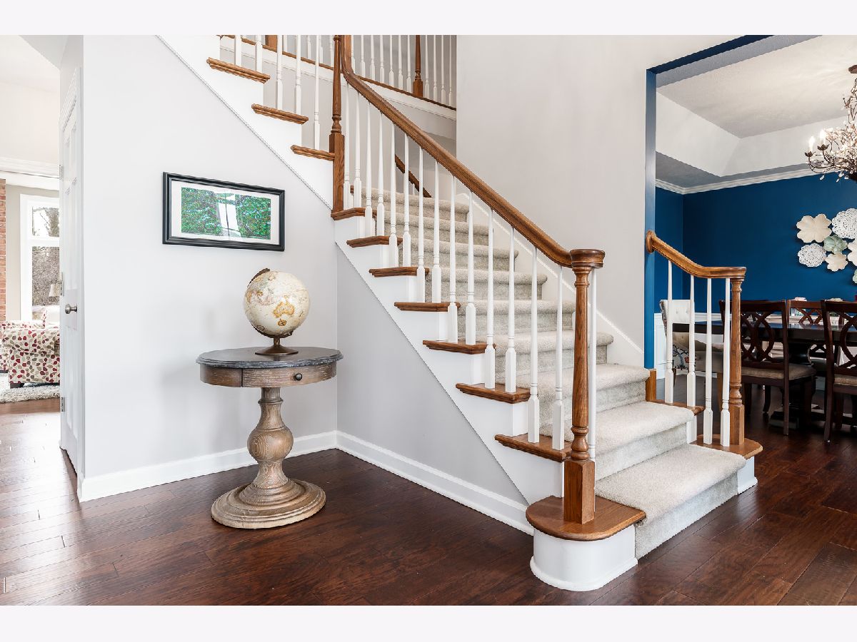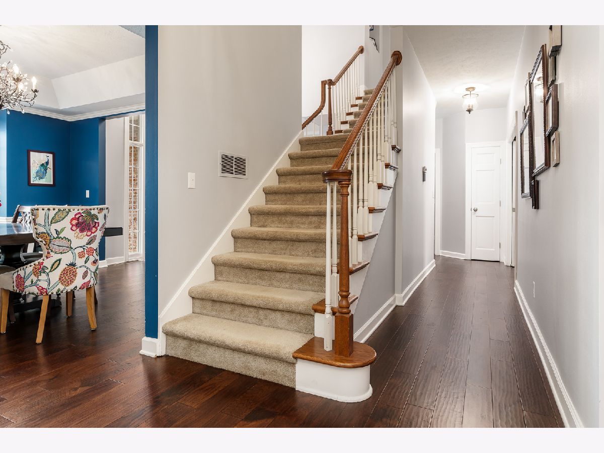 Just Stunning! Originally built by Zimmerman Home Builders, this home has had a major update which included the kitchen, laundry room, and powder room. Professionally designed, the new space has been opened to the family room and boasts a large Quartz center island with seating, statement tile wall above the induction cooktop, pantries, pullouts, an appliance garage, double ovens, under cabinet lighting, planning desk and large bayed eating area that overlooks the private yard. The laundry room behind the kitchen was amazingly designed with 4 cubicles for backpacks, shoes, and coats, a utility sink, tons of storage cabinets and counter space, a wall-mounted dry rack, and a hanging bar. The washer and dryer do stay with the home. The powder room is spacious and glamorous with tasteful wallpaper, upgraded vanity, and lighting. The entire main level has gleaming engineered Hickory Hardwood flooring, newer light fixtures, and painted white woodwork. The main floor office has built-in bookcases and a beautiful view of the woods - it is currently used as a children's playroom. The main level family room has a wall of windows and a brick gas fireplace as its focal point. The upstairs has 4bedrooms which include the main suite with a double door entry, full ensuite, and walk-in closet off the master bath. A guest bedroom with its bath and two bedrooms that share a Jack-n-Jill bath, but have their own vanities. All bedroom closets have organizers in them. The lower level is partially exposed and also has a full bath rough-in-tons of potential for future finished space. There is a water softener and iron curtain that is owned, and the Reverse Osmosis to the kitchen sink and refrigerator is rented. The playset is almost brand new and will be staying. New garage doors and openers were replaced in 2019. New roof in 2017. New well tank 2019. New furnace in 2019. This home has tons of space inside and out! The deck with planters overlooks the private yard and the house is on a quiet cul-de-sac. HOA $150/year includes fence, entrance plantings and maintenance.