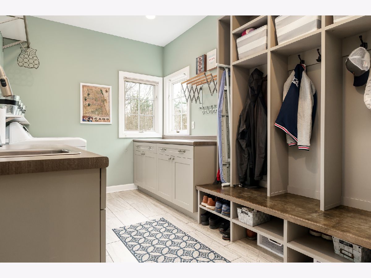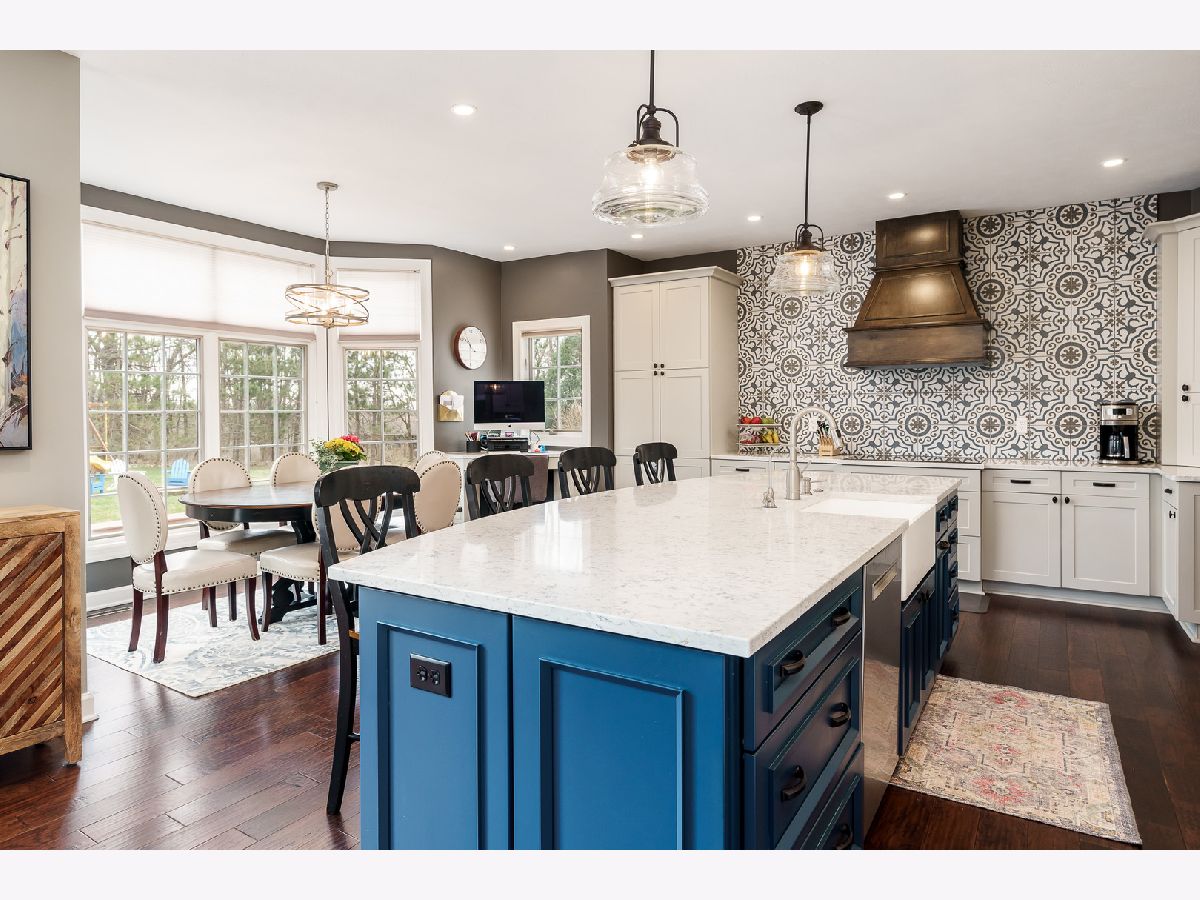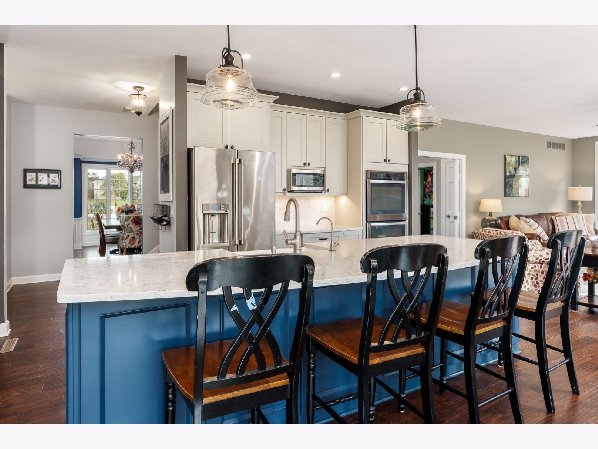 Just Stunning! Originally built by Zimmerman Home Builders, this home has had a major update which included the kitchen, laundry room, and powder room. Professionally designed, the new space has been opened to the family room and boasts a large Quartz center island with seating, statement tile wall above the induction cooktop, pantries, pullouts, an appliance garage, double ovens, under cabinet lighting, planning desk and large bayed eating area that overlooks the private yard. The laundry room behind the kitchen was amazingly designed with 4 cubicles for backpacks, shoes, and coats, a utility sink, tons of storage cabinets and counter space, a wall-mounted dry rack, and a hanging bar. The washer and dryer do stay with the home. The powder room is spacious and glamorous with tasteful wallpaper, upgraded vanity, and lighting. The entire main level has gleaming engineered Hickory Hardwood flooring, newer light fixtures, and painted white woodwork. The main floor office has built-in bookcases and a beautiful view of the woods - it is currently used as a children's playroom. The main level family room has a wall of windows and a brick gas fireplace as its focal point. The upstairs has 4bedrooms which include the main suite with a double door entry, full ensuite, and walk-in closet off the master bath. A guest bedroom with its bath and two bedrooms that share a Jack-n-Jill bath, but have their own vanities. All bedroom closets have organizers in them. The lower level is partially exposed and also has a full bath rough-in-tons of potential for future finished space. There is a water softener and iron curtain that is owned, and the Reverse Osmosis to the kitchen sink and refrigerator is rented. The playset is almost brand new and will be staying. New garage doors and openers were replaced in 2019. New roof in 2017. New well tank 2019. New furnace in 2019. This home has tons of space inside and out! The deck with planters overlooks the private yard and the house is on a quiet cul-de-sac. HOA $150/year includes fence, entrance plantings and maintenance.