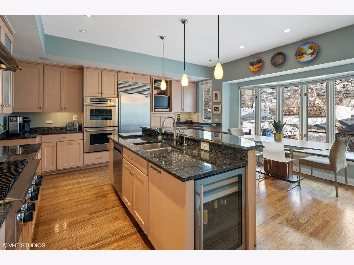 SOLD ON PLN - Classic Pappageorge-Haymes designed home in fantastic Lincoln Park location on beautiful, quiet 1-way Magnolia in Oscar Mayer school district. Pride of ownership exudes throughout this 21 foot wide interior home equipped with skylights, large backyard accessed directly from lower level and 3 bedrooms on one level. Upon entering, you are greeted by the front formal living room boasting a wood burning fireplace surrounded by beautiful built-ins and large west-facing picture window, with adjacent powder room. Further in, a dramatic stairwell with skylight and spacious dining room. Gourmet, eat-in kitchen with large island with built-in beverage fridge, high-end stainless steel appliances, breakfast nook tucked into gorgeous bay window overlooking the backyard city oasis. 2nd level has luxurious primary bedroom with vaulted ceilings, and all marble, en-suite dramatic spa bath with skylight over jetted tub, separate shower and dual sink vanity. 2 additional bedrooms also with vaulted ceilings and marble full guest bath complete this level. Unique and smart lower level conveniently opens to backyard making the space ideal for entertaining. A small mudroom area right off sliding doors is adjacent to the gracious family room with hardwood floors, a gas fireplace and a built-in daybed. Another guest bedroom/den and full bathroom, plus a gorgeous renovated laundry room with quartz counter for folding, and custom louvered doors. The professionally landscaped backyard oasis features blue stone pavers, a built-in stone gas grill, fountain, separate dining and tranquil lounge space. Truly spectacular home and outdoor space to entertain or simply live and enjoy a serene city living style. 2 Car detached garage. Location couldn't be more convenient with easy access to Clybourn corridor shopping, Armitage boutiques, el brown line stops, and access to highway.