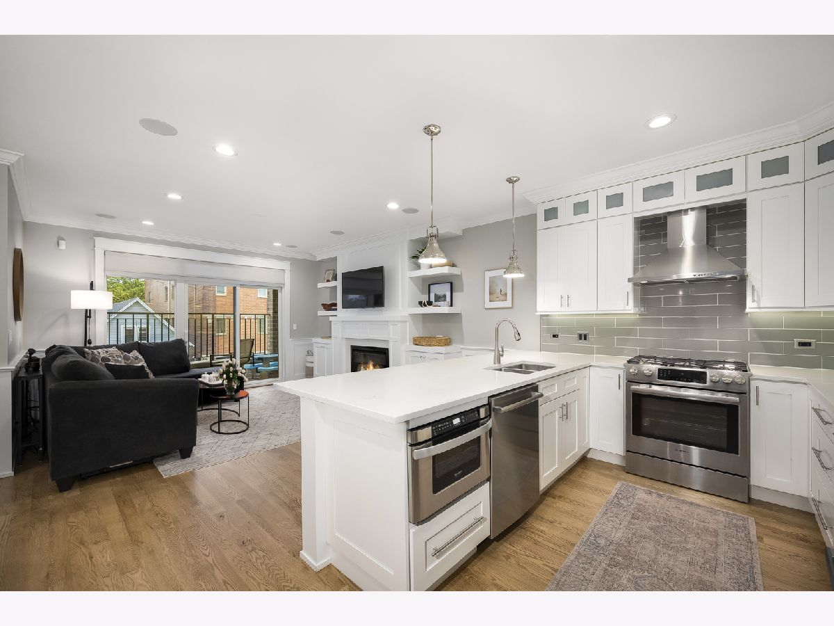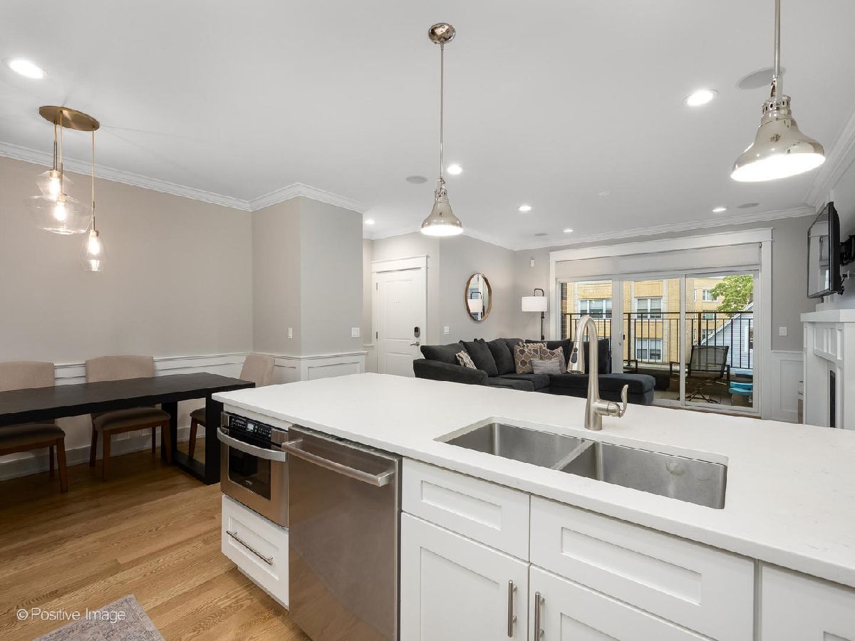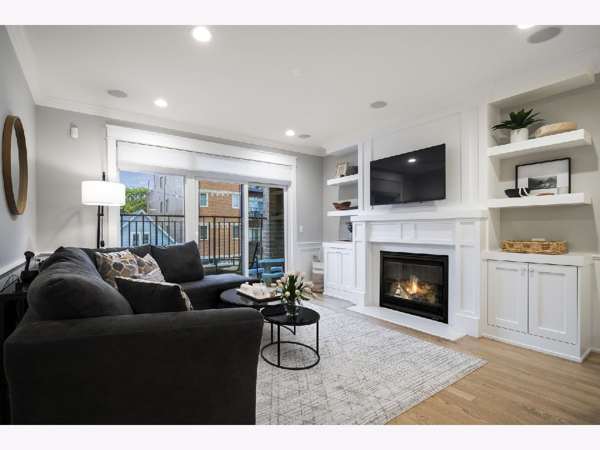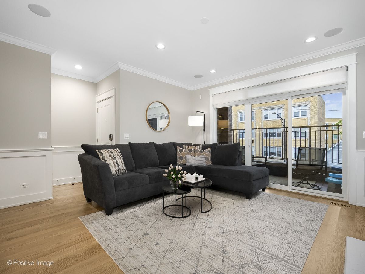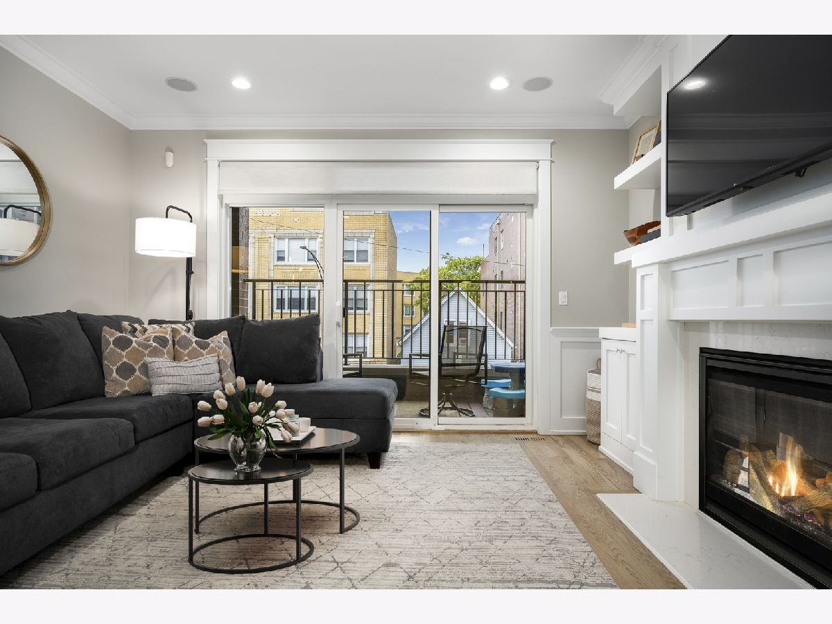 Fantastic newer construction 3BD/2BA simplex condo that backs up to and has views of beautiful Brands Park! Freshly paint and newly refinished hardwood floors. Spacious open floor plan with an abundance of natural light. High-end finishes, high ceilings, upgraded millwork and craftsmanship, and crown molding throughout. Living area with private front balcony, built-in entertainment area by fireplace, and prewired for sound. Sleek white kitchen with stainless steel appliances, breakfast bar, granite counters and under cabinet lighting. Main suite features a walk-in closet, additional closet, park views and ensuite bathroom with heated floors, dual vanity and step-in shower. Blackout window treatments in the bedrooms recently added. Washer/dryer in unit. Parking space and large storage closet included. Great Avondale location with easy access to highway, trains and bus. Walk to park, restaurants and much more!