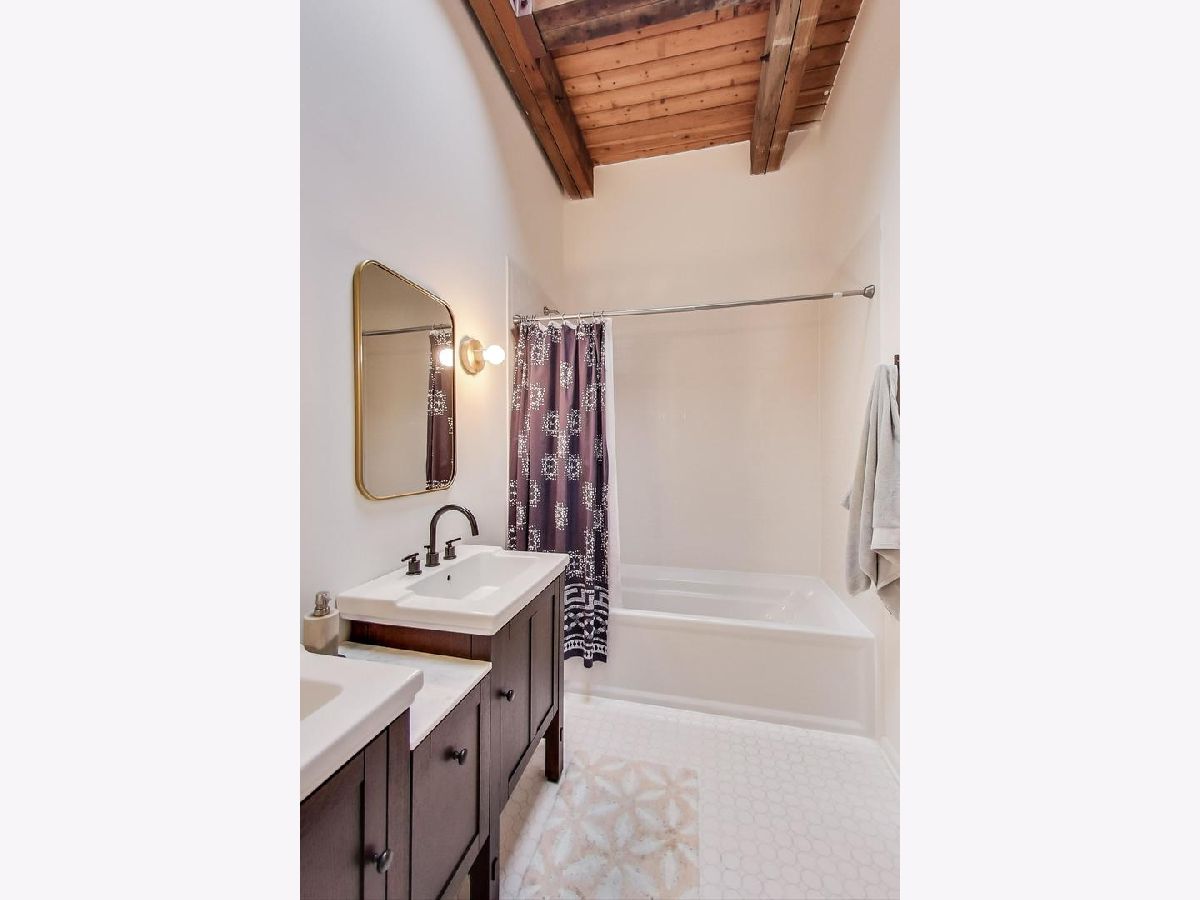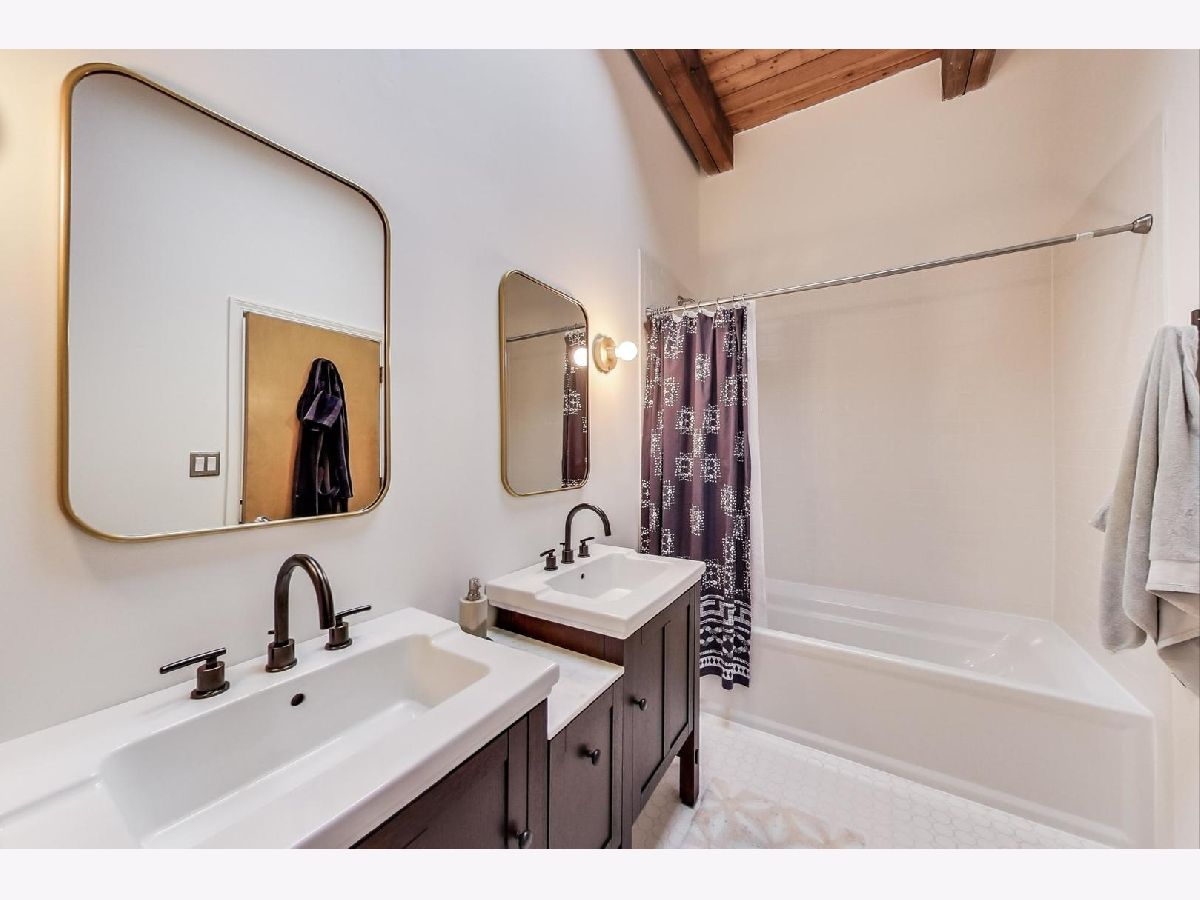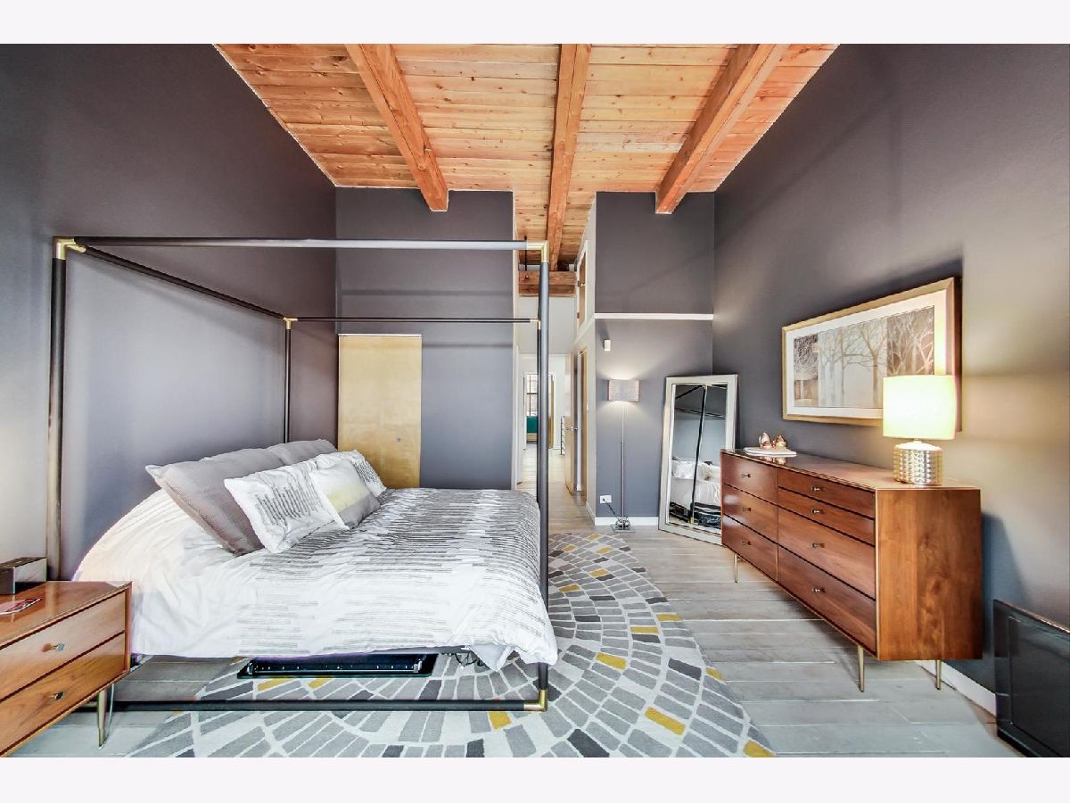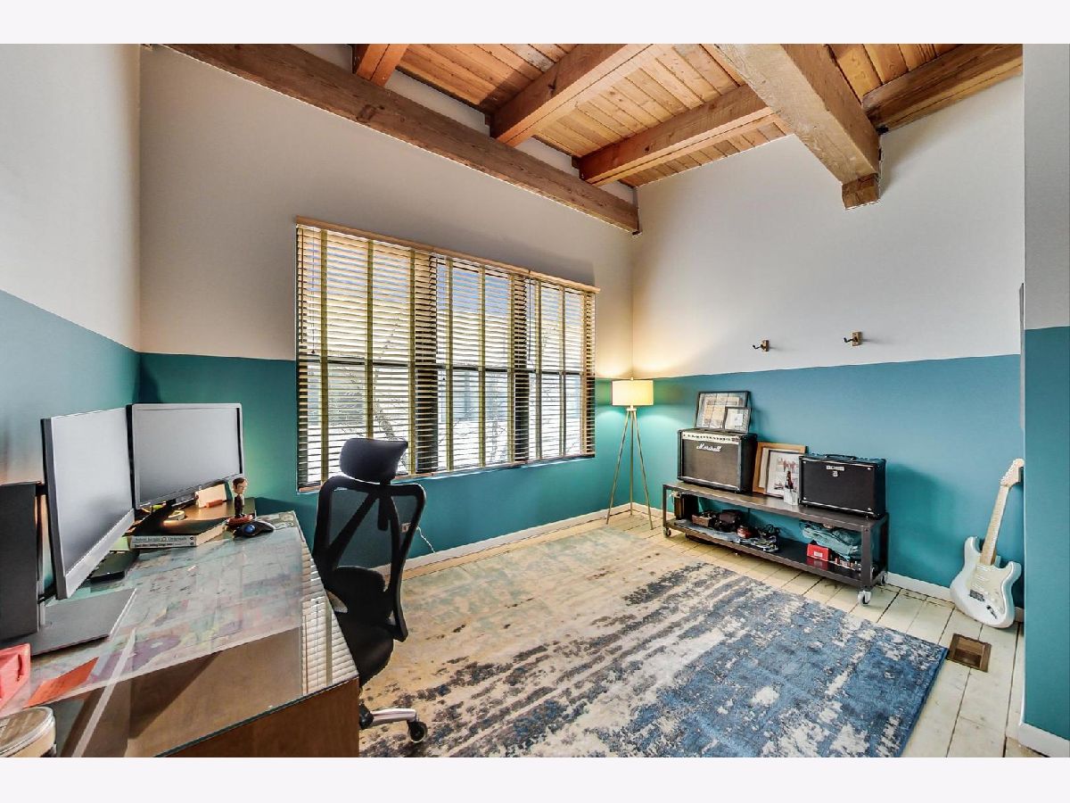 Smartly renovated top floor duplex up timber loft in prime Bucktown location. The unit features soaring ceilings, exposed brick, and hardwood floors throughout, in addition to 2 private balconies. Open concept living space with a floating staircase is perfect for entertaining or relaxing by the wood burning fireplace. Kitchen features white cabinets, newer stainless appliances and grey quartz countertops. Additional matching built-ins on the opposite wall are a perfect use of space and ideal for entry way or pantry storage. Vintage industrial pendant lights frame out an ideal space for a dining table or kitchen island. The second level features split floor plan bedrooms and an updated, spacious bathroom with double vanities, linen closet, skylight and dual entry. Primary bedroom boasts a custom built out walk-in closet with additional storage above. The second bedroom, large enough to fit a queen bed as well as a desk for an office space, is also outfitted with a custom closet build out. Also included are two parking spots - one attached garage spot with additional storage + one exterior parking pad just outside the garage. Run, walk or bike on the award-winning 606 Trail and enjoy the newly upgraded Walsh Park featuring green space, an athletic field, a playground, community garden, and dog park. Just a quick stroll to the Blue Line, Clybourn Metra, and all the restaurants, shops and nightlife that Bucktown has to offer.