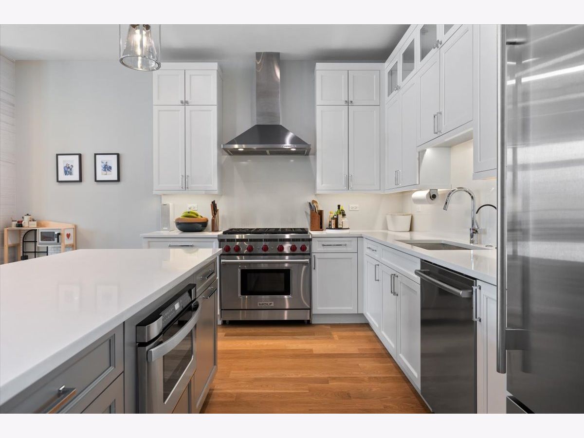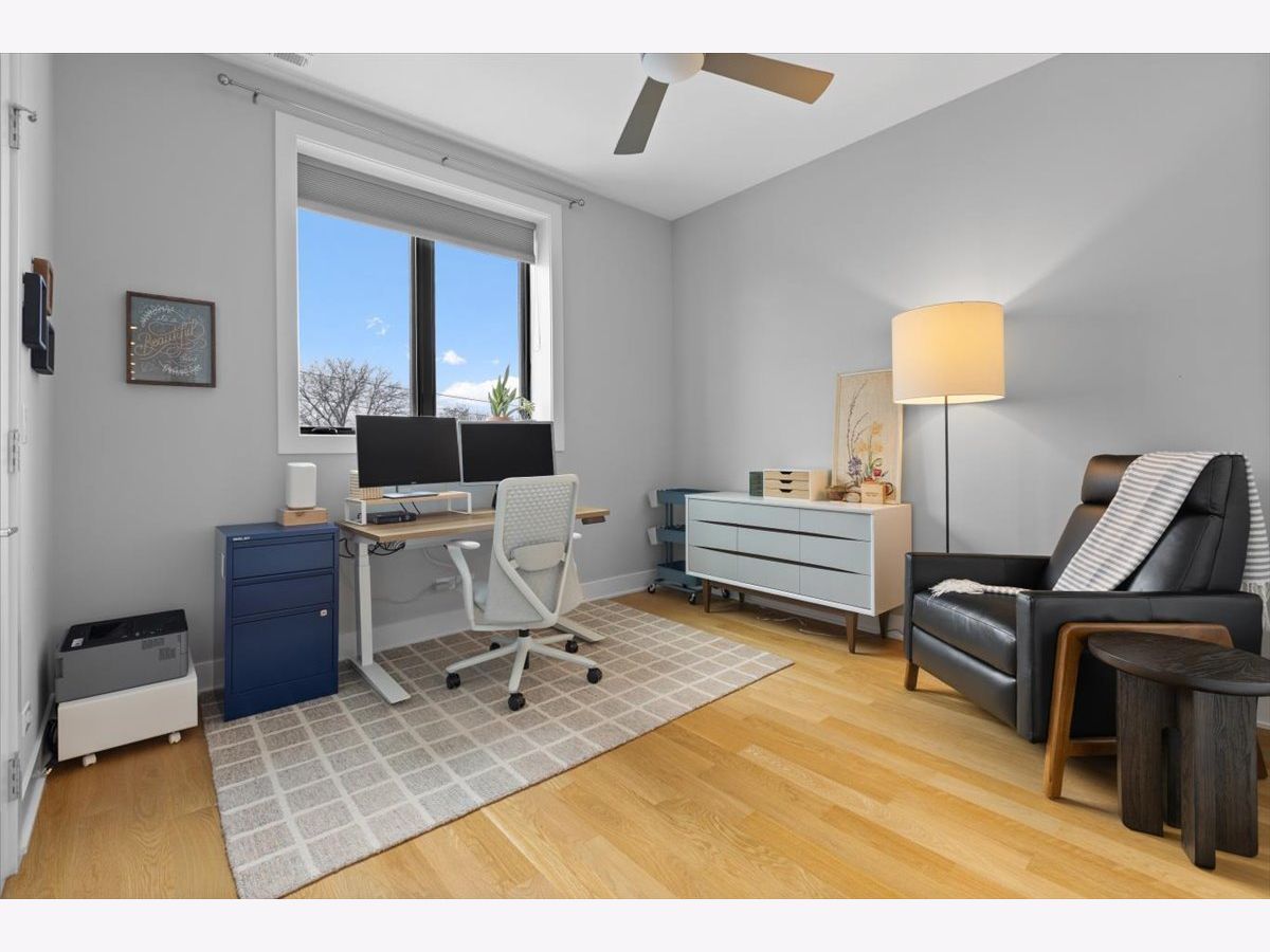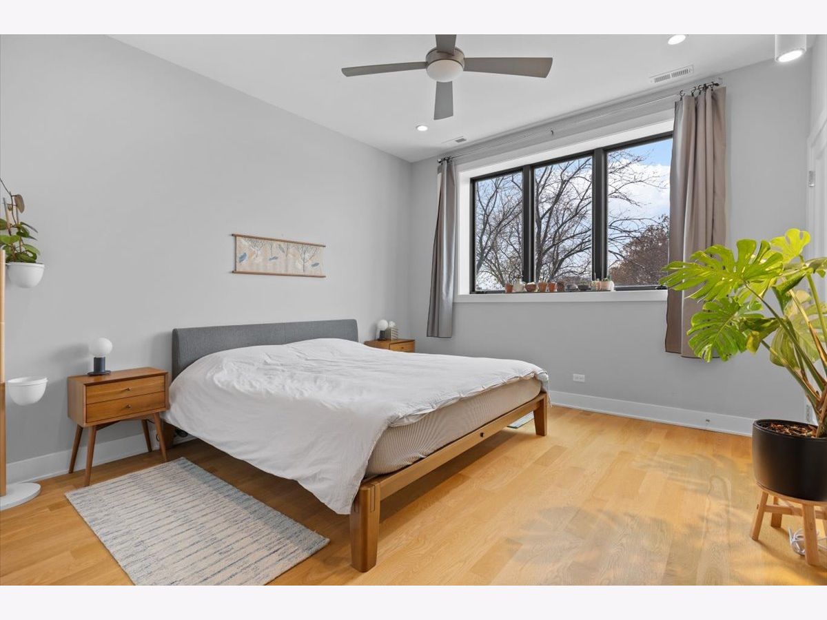 Welcome to modern living in the heart of Lincoln Square. This extra-wide 3BD/2BA condo offers the convenience of an attached heated garage and additional storage, all within a boutique elevator building in the Waters School district. Enjoy uninterrupted, east-facing views of Welles Park from the open-concept living/dining area, which flows to an oversized front balcony. The chef's kitchen features white cabinetry, a grey quartz island, Sub-Zero/Wolf appliances, and a dry bar with wine fridge. Both bathrooms include double vanities and premium finishes; the primary suite features heated floors and a steam shower. Additional highlights include a gas fireplace, custom organized closets, and beautiful hardwood floors. Outdoor space includes the large front balcony plus private rooftop space. All just steps to the Brown Line, top-rated schools, local shops, restaurants, and the year-round recreation of Welles Park.