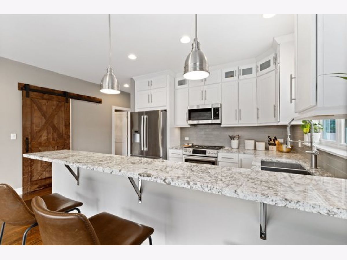 Step into a remarkably spacious floor plan + extra wide lot boasting 4 bedrooms and 3.1 baths, providing ample room for comfortable living. The large and bright finished basement adds an extra touch of luxury to this remarkable home. Indulge your culinary desires in the upscale and beautifully designed kitchen. Enjoy a long breakfast bar, elegant tall white cabinets, gleaming granite countertops, and top-of-the-line Bosch appliances. For the coffee lovers, a bonus custom-built coffee bar awaits. Additionally, a custom kitchen barn door leads to the pantry, adding both functionality and charm. Custom-built floor-to-ceiling stone fireplace in the living room. This exquisite feature adds warmth and character, creating an inviting atmosphere for cozy gatherings. Escape to your personal sanctuary in the serene primary bedroom. Pamper yourself with a separate whirlpool tub, a spa shower, designer porcelain tile, and a double vanity. Modern living with the gorgeous contemporary finishes throughout. Additionally, this home is fully equipped with advanced technology featuring two Nest smart thermostats, immersive surround sound speakers in the basement, and Ring door security system. Parking is a breeze with the two-car garage. Great curb appeal with worry-free James Hardie fiber cement exterior siding that doesn't attract pests and resists water absorption. Experience the best of both worlds with this home's wonderful location. Enjoy the amenities of Portage and Merrimac Park, as well as nearby shops and restaurants, all just steps away. This prime location ensures a vibrant and convenient lifestyle.