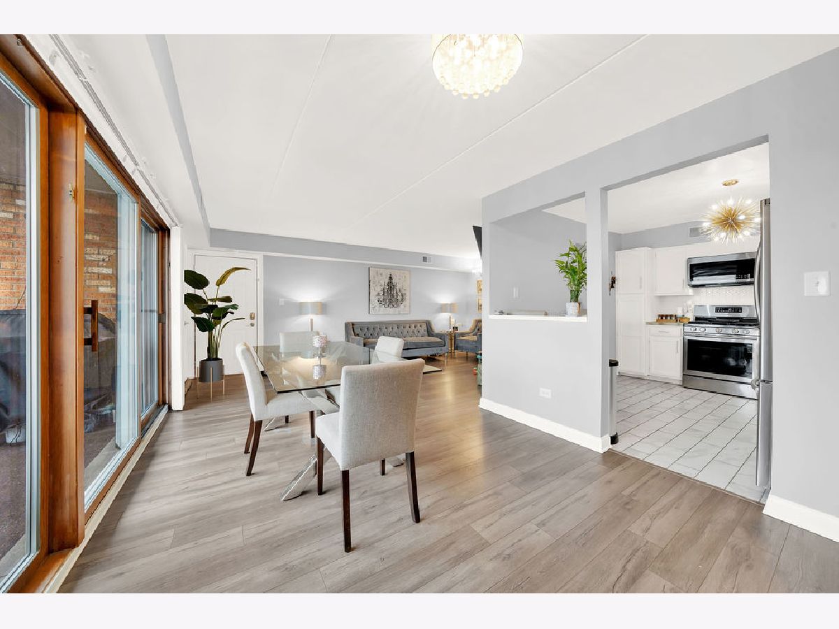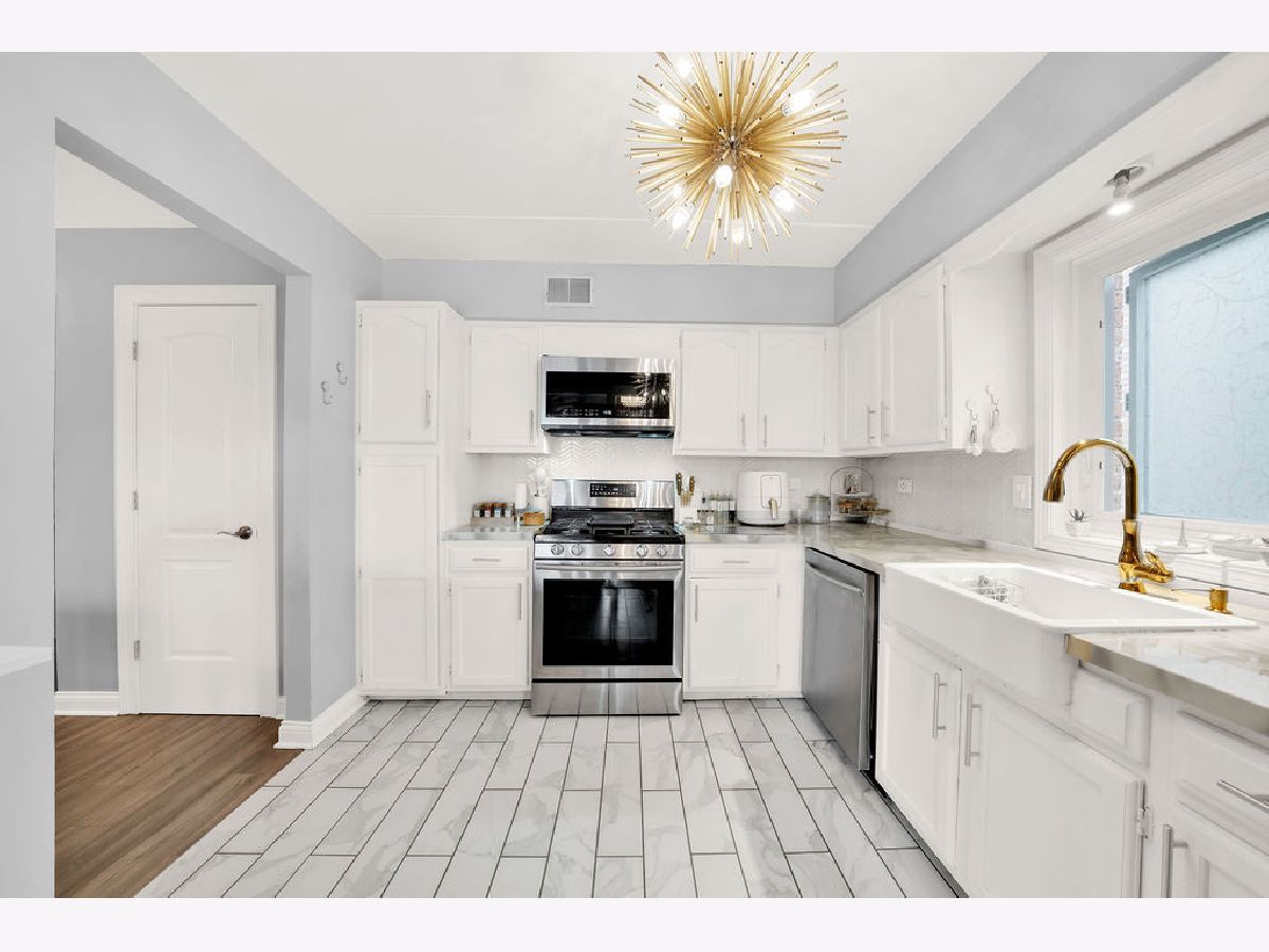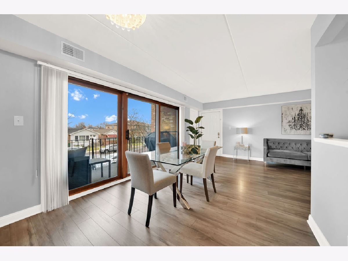 Ring in the new year in this beautiful move-in ready, 2nd-floor condo! Conveniently located in the Clearing neighborhood, close to parks, dining, shopping and public transportation. While offering easy access to Midway Airport and the I-55 expressway. Remodeled in 2019, this unit boasts modern finishes throughout, including ample closet space, newer stainless-steel appliances, a deep foyer closet and pantry off the kitchen. The eat-in kitchen includes bright white cabinets, a farm-style sink, porcelain tile flooring, chevron tiled backsplash with gold accents throughout. The adjoining dining room includes a massive sliding door with access to the unit's balcony. Here, you can enjoy that morning cup of coffee! Spaciously laid out, the living room and dining room allow for an open space feel, where you can host friends without having to be in separate rooms. Both the dining and living room space include wood laminate flooring. The two bedrooms are spacious and include wood laminate flooring. The master bedroom includes its own full bathroom with a stylish walk-in shower. The unit's main bathroom includes a whirlpool tub, sliding glass doors, and attractive modern tile-work. Enjoy the convenience of the in-unit laundry room, with plenty of cabinet storage and access to the HVAC unit. This condo also features flexicore construction, a 1-car garage, and is pet friendly! Schedule your showing today!