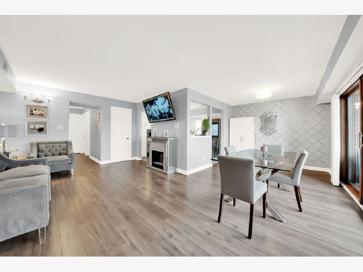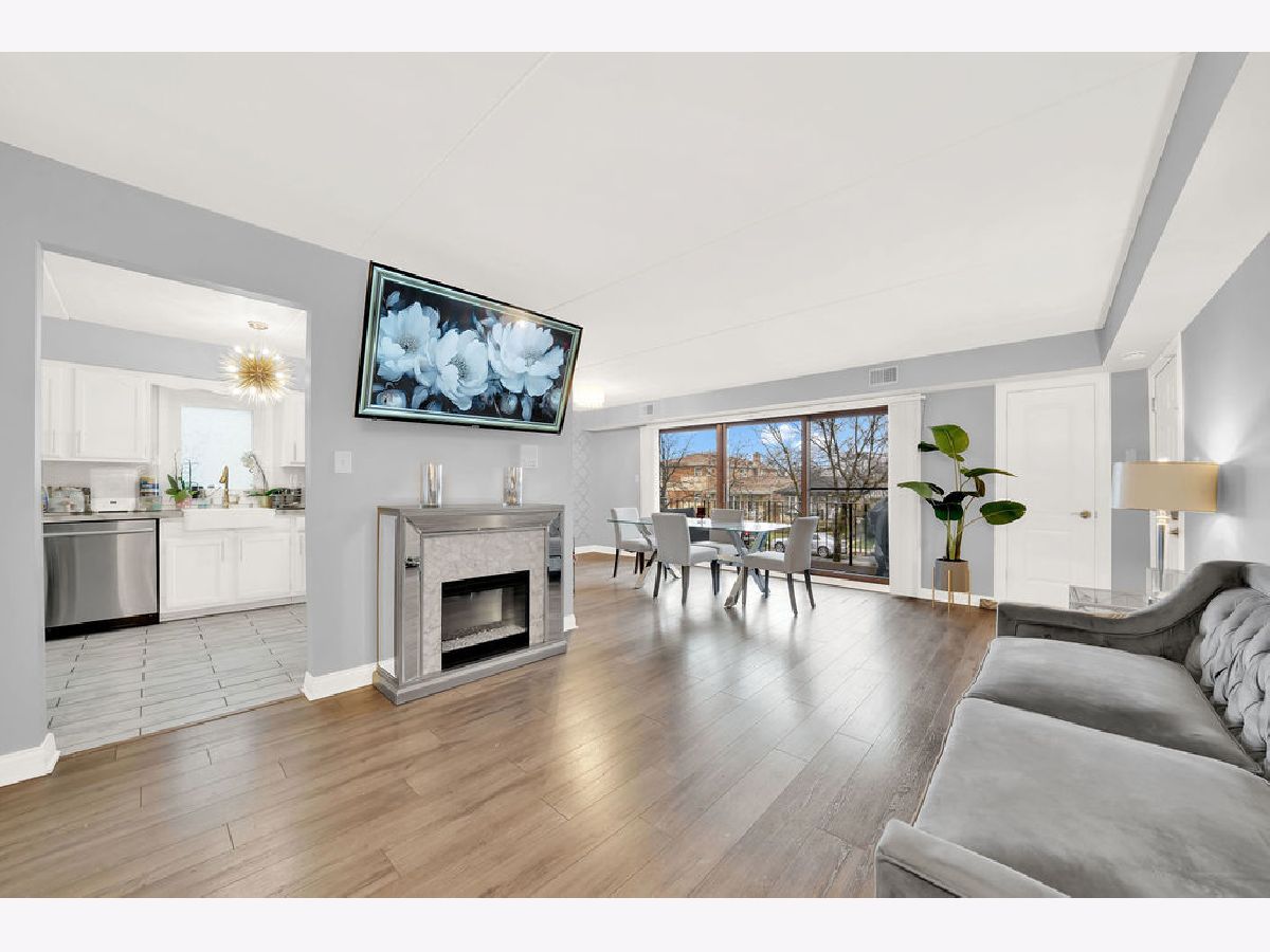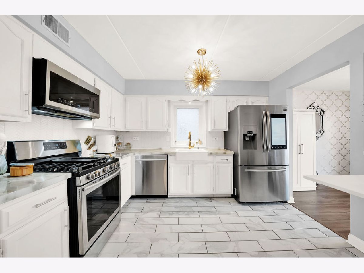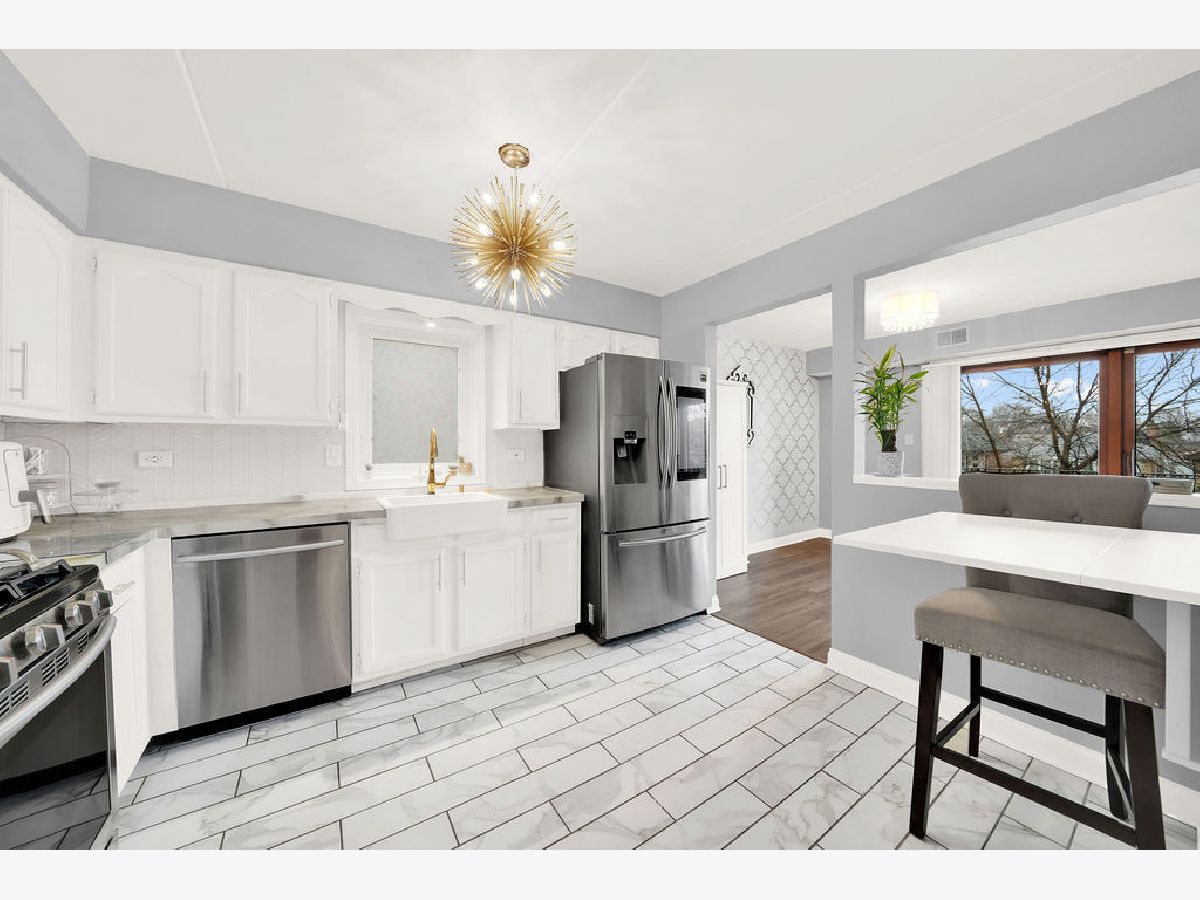Ring in the new year in this beautiful move-in ready, 2nd-floor condo! Conveniently located in the Clearing neighborhood, close to parks, dining, shopping and public transportation. While offering easy access to Midway Airport and the I-55 expressway. Remodeled in 2019, this unit boasts modern finishes throughout, including ample closet space, newer stainless-steel appliances, a deep foyer closet and pantry off the kitchen. The eat-in kitchen includes bright white cabinets, a farm-style sink, porcelain tile flooring, chevron tiled backsplash with gold accents throughout. The adjoining dining room includes a massive sliding door with access to the unit's balcony. Here, you can enjoy that morning cup of coffee! Spaciously laid out, the living room and dining room allow for an open space feel, where you can host friends without having to be in separate rooms. Both the dining and living room space include wood laminate flooring. The two bedrooms are spacious and include wood laminate flooring. The master bedroom includes its own full bathroom with a stylish walk-in shower. The unit's main bathroom includes a whirlpool tub, sliding glass doors, and attractive modern tile-work. Enjoy the convenience of the in-unit laundry room, with plenty of cabinet storage and access to the HVAC unit. This condo also features flexicore construction, a 1-car garage, and is pet friendly! Schedule your showing today!