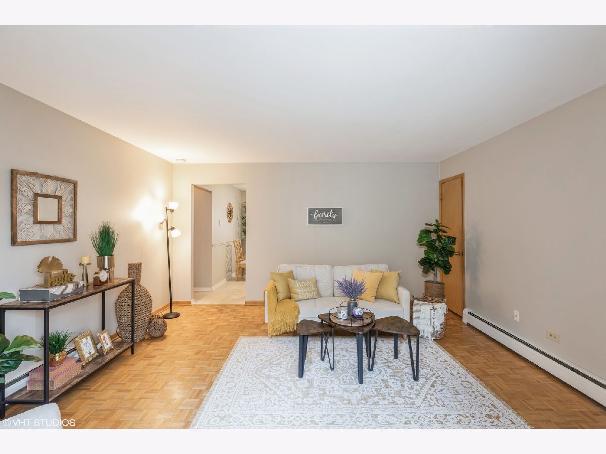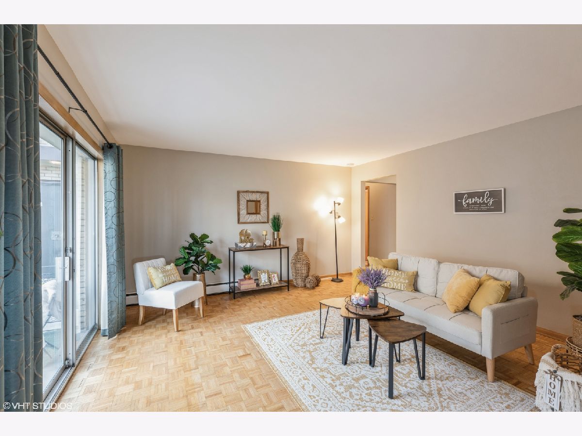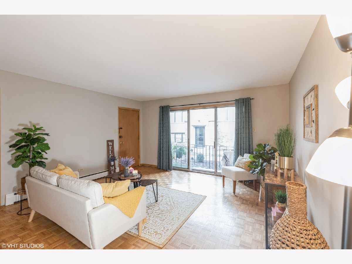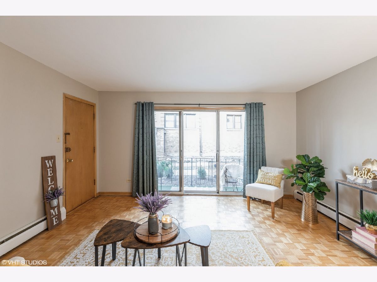 Cozy and tastefully refreshed 1st floor condo nestled in charming and convenient Beverly neighborhood. This ground level unit features 2 generously sized bedrooms and 1 full bathroom, parquet flooring and fresh paint throughout. Spacious kitchen offers plenty of cabinet/counter space and breakfast table area. Family room leads to west facing balcony, with a peaceful courtyard view. There is a lot of closet space, with an additional storage located in living room's coat closet, as well as an assigned storage locker in the common area laundry room. Self-managed, with the nicest manager ever, solid financials, newer roof, plus 1 assigned parking spot. LOCATION: walking distance to 103rd Street Rock Island Metra, shops, dining, schools, parks, and more!