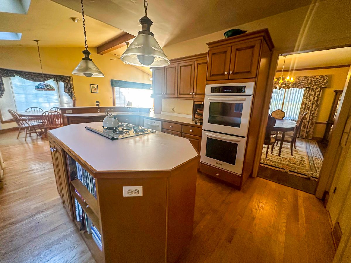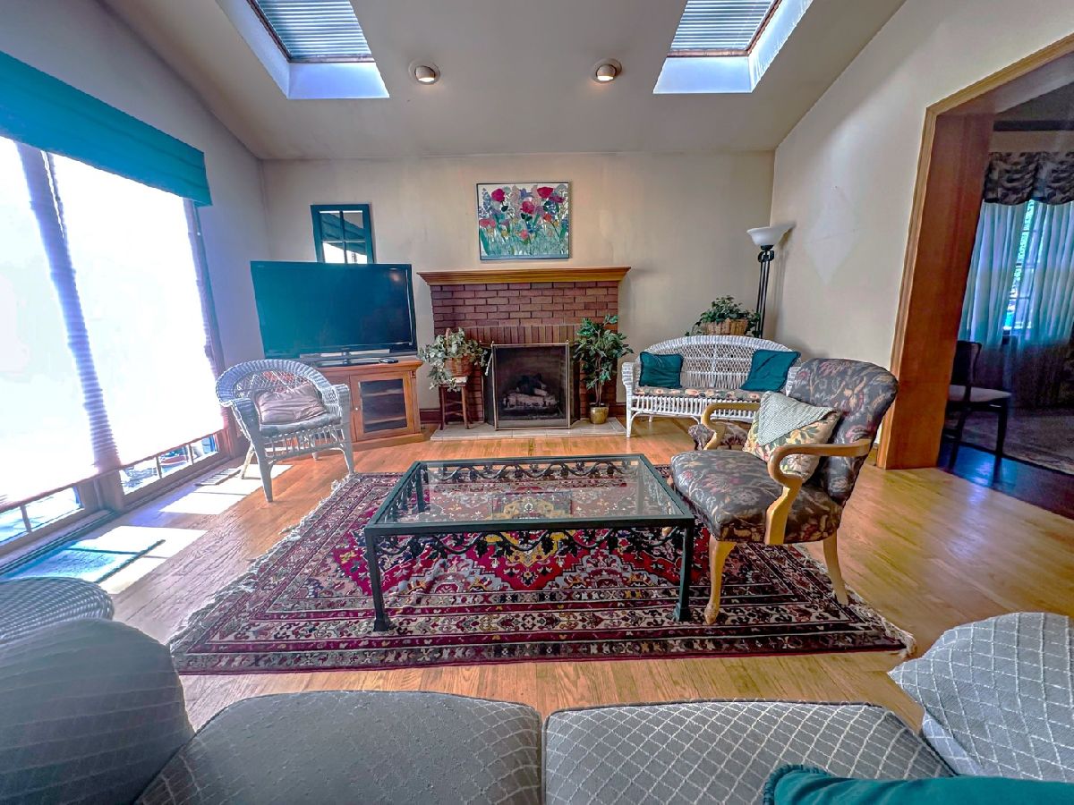 CHANDLER CHARMER IN COVETED ELMHURST NEIGHBORHOOD! This beautifully maintained 3-bedroom, 1.5 bathroom home offers a fantastic opportunity to create your dream living space in one of Elmhurst's most desirable neighborhoods. Owned by the same family for more than half a century, this property has been lovingly cared for and boasts a timelessly updated entertainer's kitchen and great room that flows onto a large deck with sweeping views of the unique, 60ft wide wooded backyard. Painstakingly restored original hardwood floors and detailed trim work add a classic touch to the welcoming living room, which boasts a recently renovated fireplace and chimney surrounded by custom wood built-ins as it flows into the formal dining room and great room. Perfect for year-round entertaining, the great room features a built-in bar, chef's island, vaulted ceilings and skylights, and a second fireplace. Upstairs, the hardwood floors continue into bedrooms with ample closet space. Downstairs, a partially finished basement offers a recreation room and built-in office space, plus additional unfinished space for storage with and range of possibilities. The attached garage offers additional attic storage space, and with rear egress providing the opportunity to expand the driveway/garage.