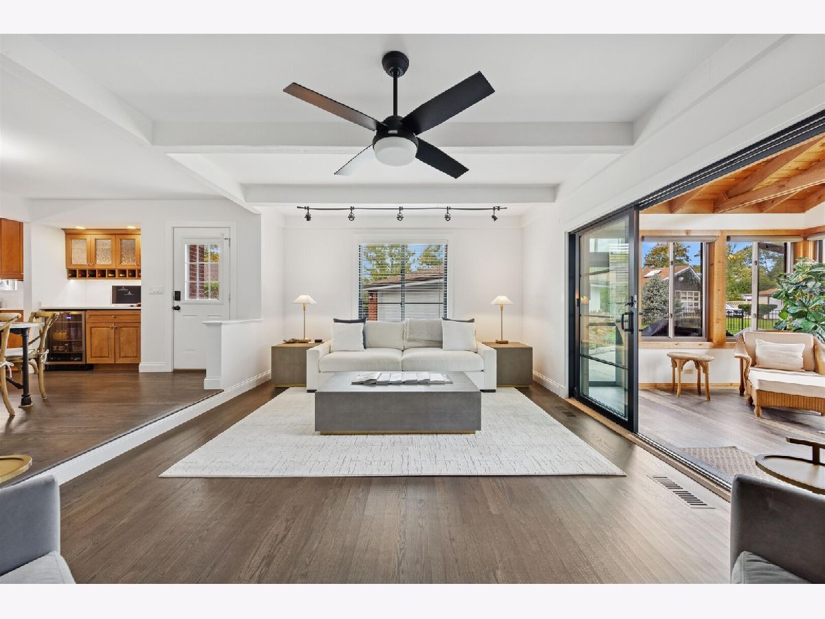Love Where You Live! | This beautifully Redesigned solid brick ranch boasts multiple additions, creating an ideal living space tailored for comfort | The home's layout flows seamlessly, featuring brand new hardwood floors throughout. | A formal living area at the front | Step into the stunning, updated open kitchen, with new appliances, gorgeous quartz counters and backsplash, complete with a separate dry bar and wine fridge, perfect for both casual and formal entertaining. | The kitchen opens into a spacious dining area that leads to a stunning family room, highlighted by a brick fireplace (wood-burning and gas options) and elegant wood beam ceilings. | Enter through the elegant black sliding doors and take in the breathtaking views of your private 80x140 lot from the incredible four-seasons room, which features vaulted wood ceilings, offering a serene escape throughout the year. | Adjacent to this space is a charming second dining area, ideal for hosting gatherings while soaking in the beauty of the changing seasons! | 3 bedrooms and 2 full baths | The primary suite is amazing with great design and full walk in closet. | Bathrooms have been updated and one featuring all marble shower, flooring, and custom marble counters! | The full finished basement adds even more value, featuring a third bedroom, an updated laundry room equipped with a brand new high-end washer and dryer, additional living/entertaining space, and plenty of storage options.| Relaxation reaches new heights here! | This home has SO much NEW....high end windows, new paint throughout, all new light fixtures/ceiling fans, new baseboard and trim, newer dual furnace, hot water heater, and an updated roof, this home is move-in ready.| The exterior is gorgeous as well with new Hardy plank siding, beautiful new landscaping, and fully fenced in yard | Only two owners have cherished this solid ranch. | Love Elmhurst!