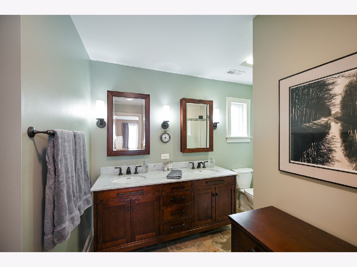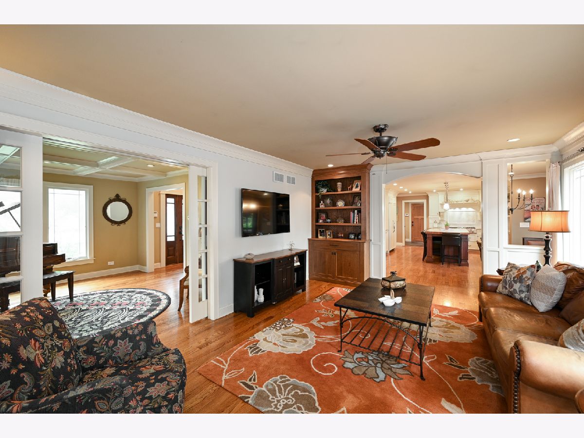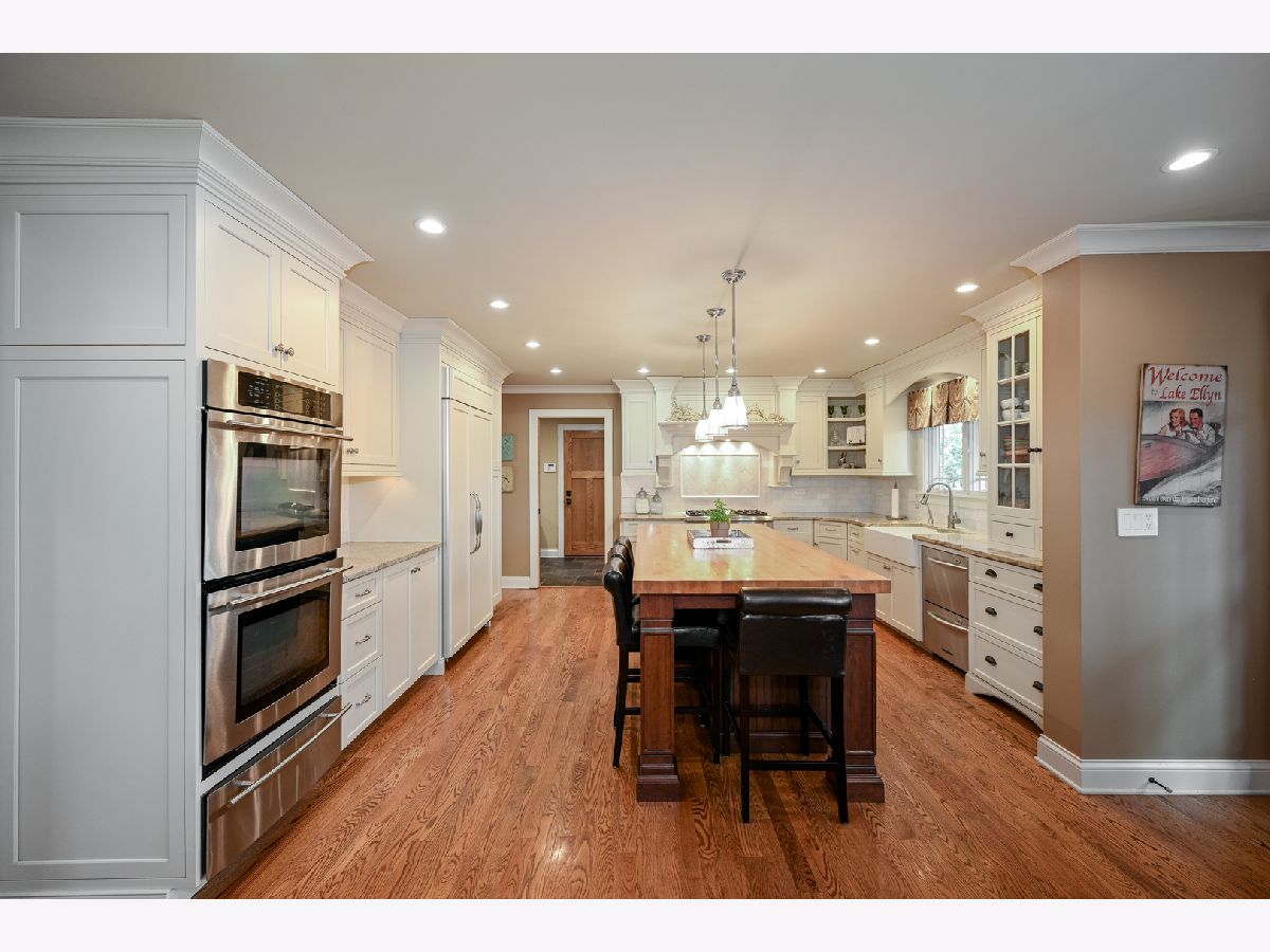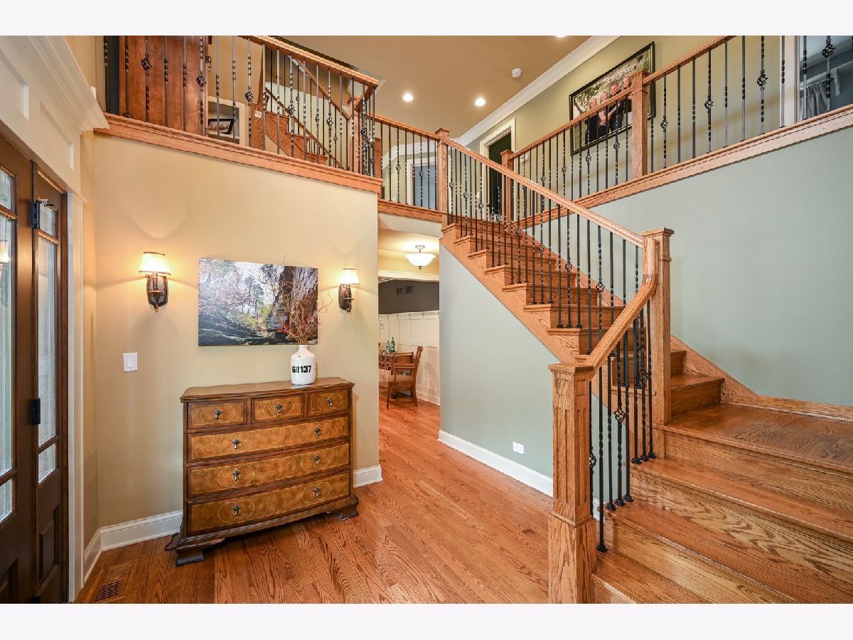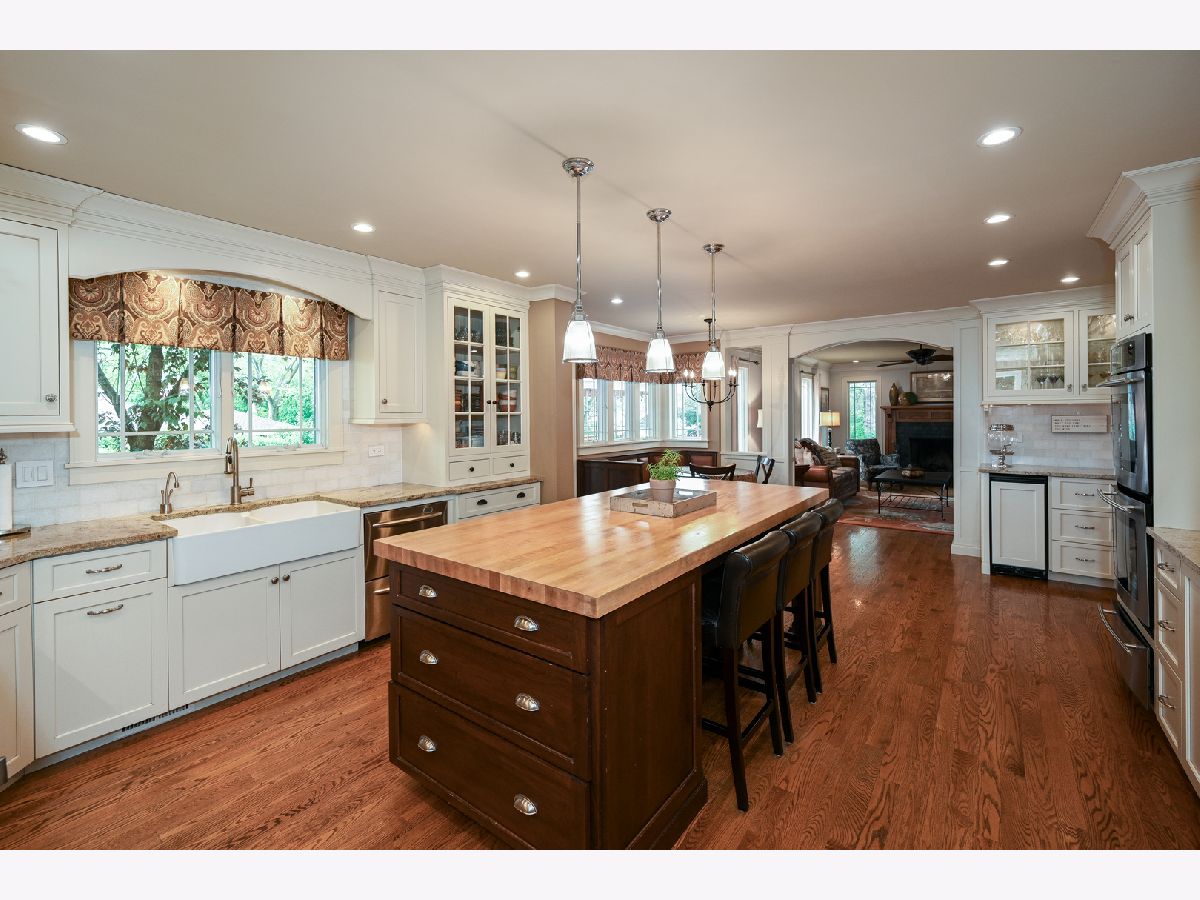 Welcome to this sprawling custom built, 3-story home on a cul-de-sac in the heart of desirable Glen Ellyn. This 5-bedroom home features exquisite craftsmanship and unique hidden storage throughout. Enjoy walking to shopping, restaurants, trains and schools. the charming front porch leads you to over 5,000 sq. ft. (4,050+ basement 1,329) complete with a bonus room on the third floor. Hardwood floors throughout the first & second levels. Beautiful custom chef's kitchen with white cabinets, granite, over-sized butcher block island, high-end appliances including Viking stove, double oven, warming drawer, two-draw dishwasher and 42"-handle refrigerator/freezer. Built-in custom leather banquet and butler's pantry round out this spectacular kitchen. Kitchen opens into an inviting family room with a gas-start wood-burning fireplace. Formal dining room has custom wainscoting and the living room has beautifully coffered ceilings. Wonderful large mudroom/laundry with built-in storage. The master suite opens grandly with a full coffee bar and possible 2nd-floor laundry. The bedroom has a gas fireplace, large walk-in closet and fully appointed marble bath with Restoration Hardware fixtures. Third floor large bonus room with full bath. Ample storage and closet space throughout entire home. Basement with bath. Additional room, recreation area and large storage room including laundry sink. Large deck, fenced in yard and paver patio. Heated 2-car garage, attached, plus additional heated 2.5-car detached garage with loft storage. Just move in and enjoy!