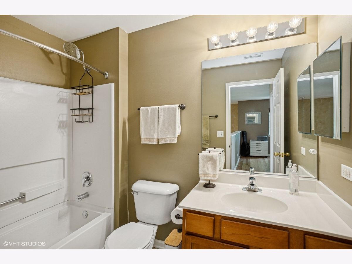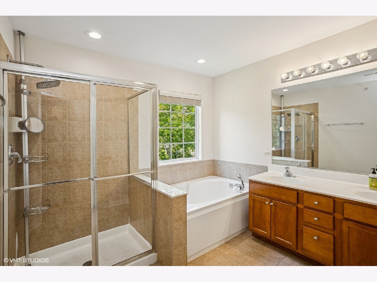 Stunning end-unit townhome in the highly desirable and meticulously maintained Canterbury Fields subdivision. Nestled in a quiet neighborhood, this beautifully updated home offers a spacious, light-filled layout enhanced by vaulted ceilings and hardwood floors throughout. The main level features a bright, open-concept kitchen with newer stainless steel appliances, granite countertops, a center island, and a sliding glass door that leads to the patio. The adjoining family room, dining area, living room, and built-in library provide the perfect spaces for both relaxation and entertaining. Upstairs, you'll find three generous bedrooms, including a vaulted-ceiling primary suite with a walk-in closet and a luxurious en-suite bathroom complete with a soaking tub, walk-in shower, and dual vanity. A convenient second-floor laundry room adds to the home's functionality. The fully finished basement offers even more living space, featuring a large second living room with a built-in wet bar and plenty of storage. Enjoy the convenience of nearby parks, forest preserves, shopping, and dining, along with easy access to Metra and major highways-ideal for commuters. Don't miss your chance to own this exceptional home in a fantastic location!