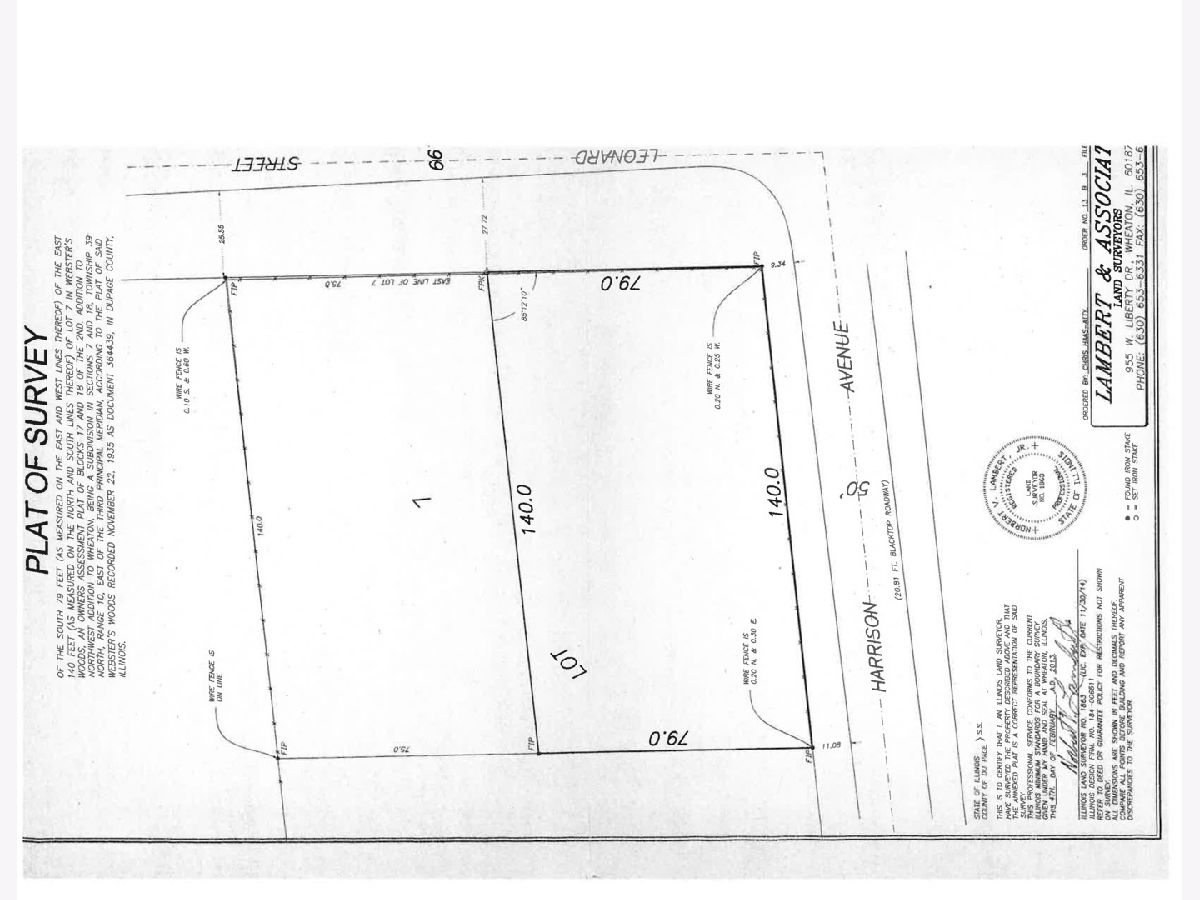 GREAT LOCATION FOR YOUR DREAM HOME! Large lot at the corner of Leonard and Harrison Street. Enjoy low real estate taxes in unincorporated WHEATON, DISTRICT 200 SCHOOLS! ACCESS TO CITY WATER & SEWER. OVER 11,000 SF AND 79' WIDE. PASSED SOIL TEST. This land is also offered with a build package by SG Home Builders. Contact listing agent for more information.