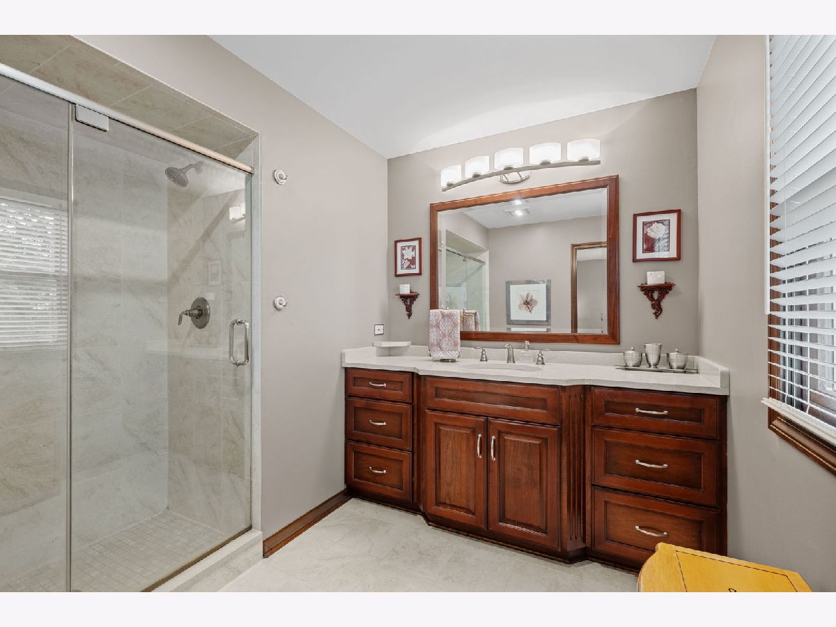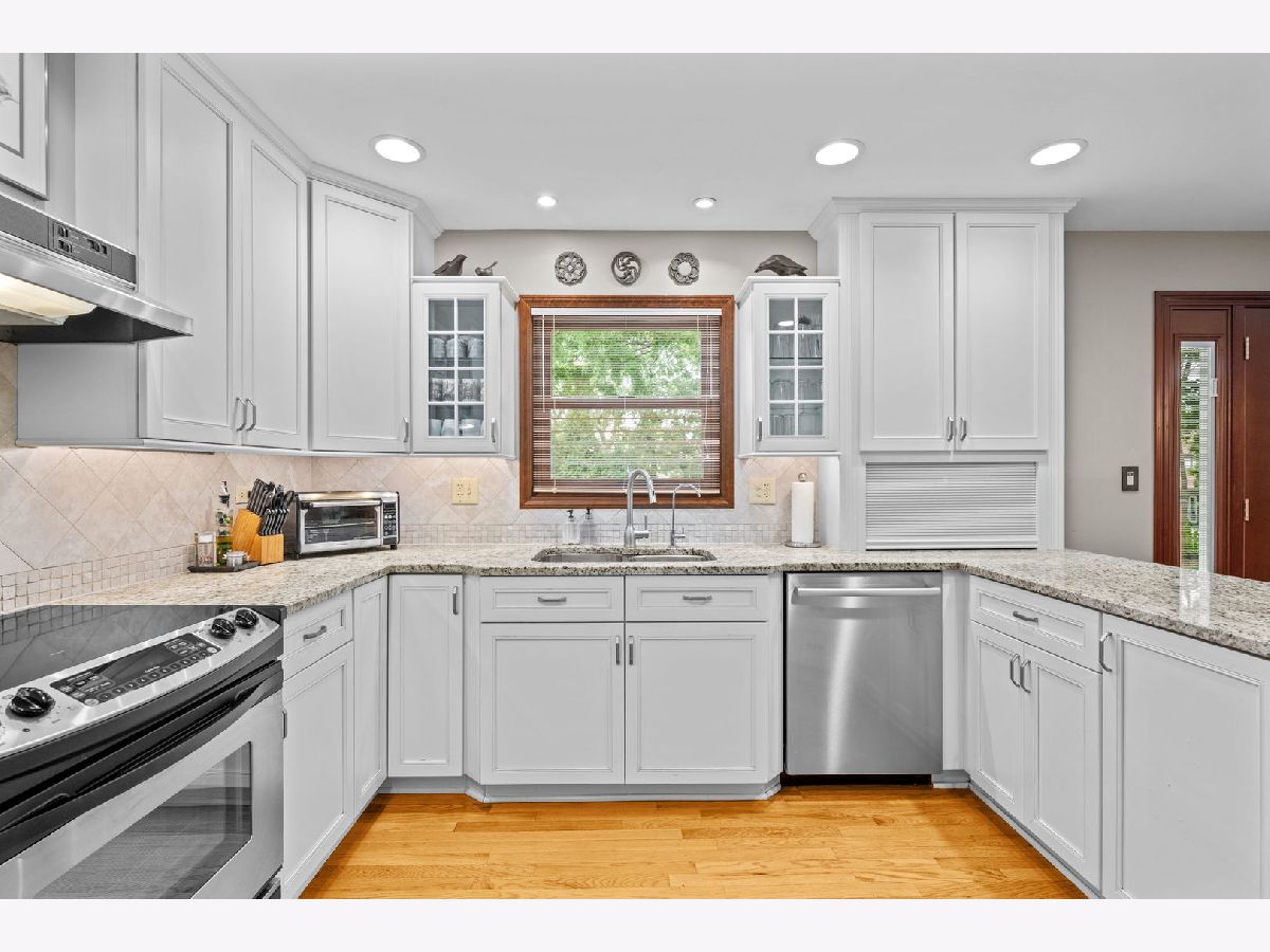 Tucked away on a peaceful cul-de-sac in the highly sought-after Naper Carriage Hill community, this beautifully updated and meticulously maintained home sits on a professionally landscaped lot just under half an acre-a true retreat in the heart of Naperville. Step into the custom-designed kitchen featuring 42" white cabinetry with soft-close doors, pull-out pantry around a newer fridge, granite countertops, stainless steel appliances, and a built-in appliance hutch-style meets function in every detail. The kitchen opens seamlessly to a sunny breakfast area with a matching white built-in hutch, and flows into a spacious family room with a bay window and cozy fireplace. You'll love the separate formal living and dining rooms, ideal for entertaining guests year-round. Hardwood floors span both the main and upper level, giving warmth and timeless appeal. Upstairs, the king-sized primary suite offers a walk-in closet and updated en-suite with a walk-in shower. All bedrooms feature good closet space, with remodeled bathrooms showcasing neutral ceramic tile, granite counters, and updated lighting. The partially finished basement provides space for a rec room, gym, or play space-plus a large unfinished area perfect for storage, hobbies, or a workshop. But the true showstopper is the backyard: a large deck overlooks two paver patios, mature trees, flowering perennials, and a tranquil sitting areas, offering both privacy and elegance. It's a gardener's dream and entertainer's paradise all in one. Major updates include: Furnace (2024), Andersen Windows (2024), Roof (2023), Radon Mitigation System (2015), and more giving peace of mind for years to come. Enjoy walkability to local parks, Carriage Hill Pool & Tennis Club, top-rated schools, and a quick drive to downtown Naperville, Metra, and expressways.