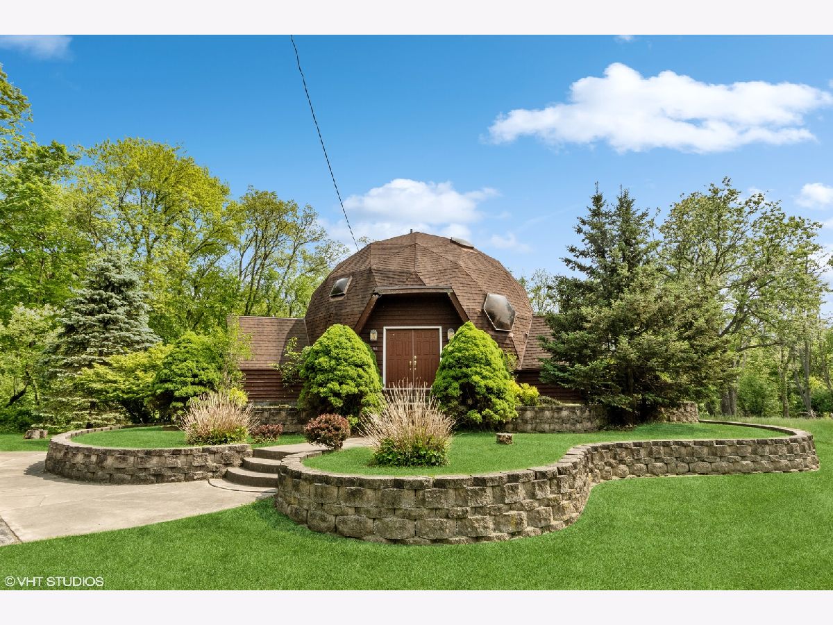 Dome sweet dome...this unique opportunity is so far outside the box, it's not a box! Geodesic dome home with 3+ car detached garage on 1.1238 acres of rolling, wooded, verdant land. Main level offers entry foyer, living room, dining room, kitchen, breakfast room, family room with sliding door to extra large deck overlooking nature, full bath with sunken tub and separate shower. Upstairs has 2 bedrooms, an open loft suite with full bath and spiral staircase to 3rd level overlook. Basement with laundry, workshop area and storage, walks out to patio area under deck. Decks are 24x24 and 16x16. Garage is 30x24 with electric - driveway has extra parking pad by garage. Unincorporated New Lenox Township, no homeowner association, so feel free to have gardens, chickens, bonfires, park your RV or boat at home. EZ access to I-80 and I-355 , Silver Cross Hospital and coming soon New Lenox park complex off Route 6 and Cedar. Custom built in 1990 by the orginal owner, this is now offered as-is (estate sale) and does need work. Roof about 12 years old (2011). All room sizes are approximate due to angled interior walls. Note that this is alongside I-80, so there is highway noise. Due to nature of type of property, buyer will more than likely need to be cash or portfolio loan - if seeking traditional, conventional financing, verify that lender can lend on a geodesic dome.