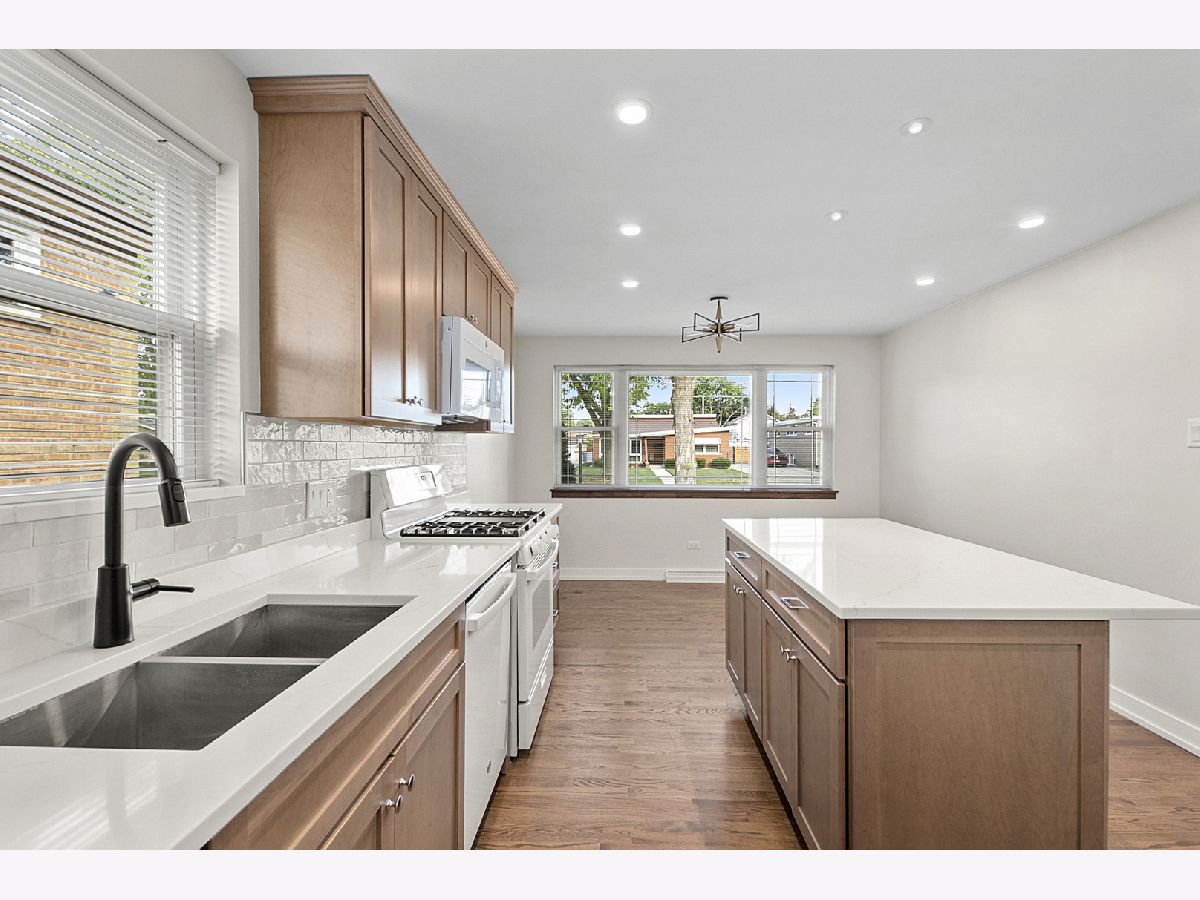 Beautiful Updated Juliet Split Level in Oak Lawn. Recent improvements include Refinished Hardwood Flooring, Recessed Lighting, Interior/Exterior Doors and Mouldings. Open Layout includes Remodeled Kitchen with Maple Cabinetry, Quartz Countertops and Ceramic Subway Tile Backsplash. Center Island with seating. Three Spacious Bedrooms with New Ceiling Fans. Two Full Bathrooms have been completely renovated including New Tile, Toilets, Vanities and Fixtures. Lower Level Family Room includes New Vinyl Plank Flooring and Wood Burning Fireplace. New Tankless Water Heater, Sump Pump and Waterproofing completed in 2024. All New Windows, Tuckpointing, and Newer Roof & HVAC. This is a LOVELY Home, located in school district 123/Kolmar and two blocks over from Saint Catherine School. Sold before print.