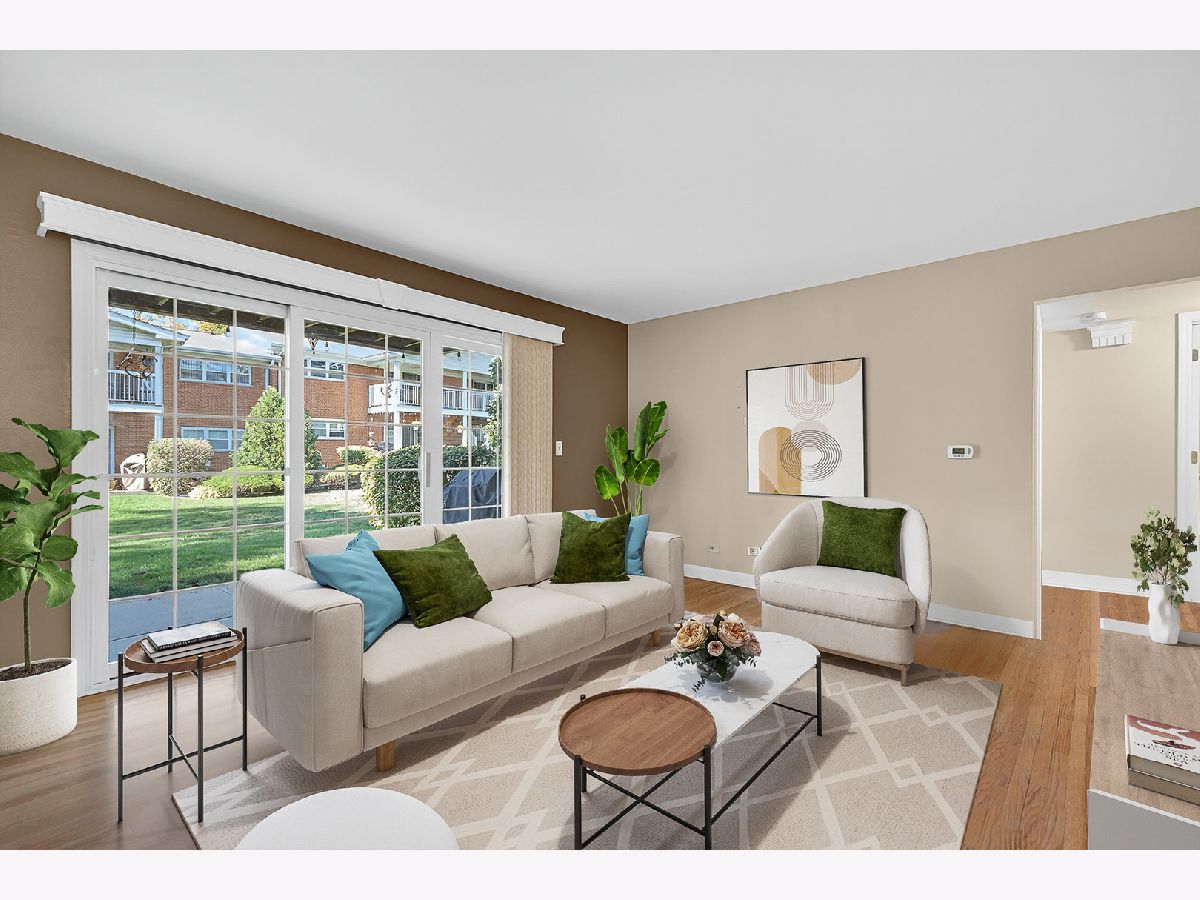 Location is Key, this charming 2-bedroom, 1-bath condo located on a quiet cul-de-sac just steps from downtown Palatine, the Metra station, Palatine Park District, restaurants, shopping, and more! Enjoy a bright and spacious living room with sliding doors that open to a large private patio - perfect for outdoor dining or relaxing with views of a lush green courtyard. The galley kitchen features newer appliances and a walk-in pantry that extends for extra storage. Timeless hardwood floors run throughout the living room, dining area, and both bedrooms. The primary bedroom, shared hallway bath, and a second bedroom which is ideal for guests, a home office, or flex space completes the space. Bonus features include a large shared (2 unit) garage with extra storage space and a laundry room with owned washer and dryer. Low-maintenance living in a prime location - ideal for commuters, first-time buyers, or those looking to downsize!