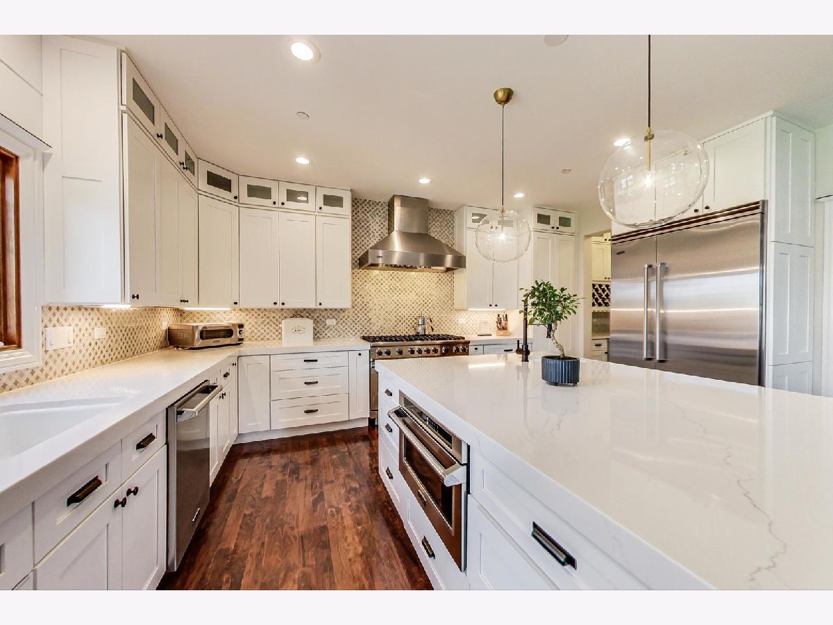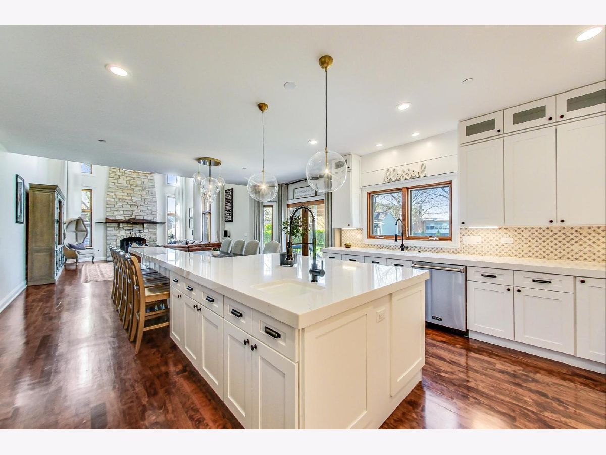Architectural masterpiece in Park Ridge! Stunning, recently upgraded 6 Bedroom, 4 1/2 Bathroom custom all-brick English Tudor with attached 2 car garage on an oversized 80x175 lot. This home is where timeless design meets modern luxury. Nearly 6,700sq ft of exceptional and professionally designed and renovated living space, no expense spared during the recent renovation. Restoration Hardware lighting fixtures throughout highlight a stunning two-story foyer, elegant living & dining room ideal for gathering with family and hosting dinner parties, and soaring 2-story family room with stone fireplace - dramatic windows bring in endless natural light, serene yard views, colorful and delightful daily sunsets. Exceptional Chef's kitchen with full suite of high end Viking appliances, sleek quartz countertops throughout, custom dinette with leather upholstery, custom cabinetry, and a butler's pantry designed for coffee and wine enthusiasts. Work from home in first floor private office (or convert to first floor bedroom inclusive of private entrance and adjacent to first floor bath), multi-task household duties while enjoying the gorgeous laundry/mud room combo with custom coat and boot lockers and built in 42" fridge/freezer combo. Upstairs, discover 5 spacious bedrooms including a luxurious primary suite with dual walk-ins & spa bath. Full finished basement with 9' ceilings, fireplace, dedicated spaces for music, exercise, games, storage and a 6th bedroom and bathroom-perfect for guests. Premium upgrades after purchasing and renovating in 2022 include but not limited to: owned solar panels (avg. ComEd bill ~$50/month), Generac whole-home generator, Lithium-ion sump backup, Aprilaire whole home steam humidifier, REME HALO whole home in-duct air purifiers (1 in each furnace unit), Tankless water heater, EV-ready garage, & more. Home is fully fire sprinklered. Lawn irrigation. See upgrade sheet for full list. A rare opportunity to own a true statement home, top-rated Maine South High School!
