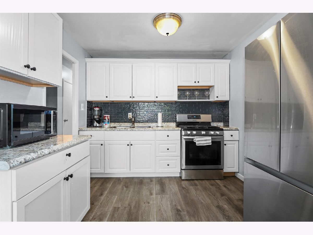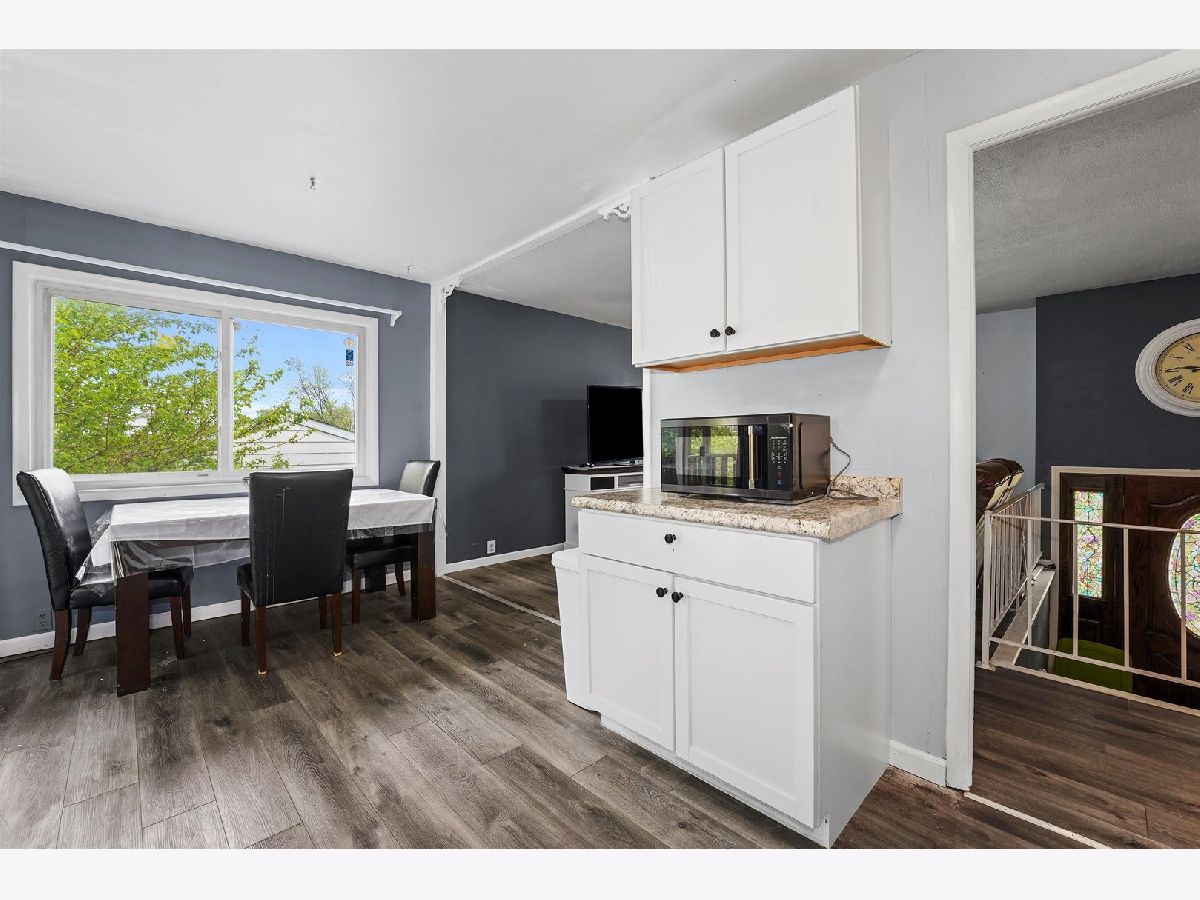 Beautiful raised ranch featuring 5 bedrooms, 1 1/2 baths, eat in kitchen with new cabinets(2022), new windows (2021), living room and family room plus a 2.5 car garage with a separate storage room attached. Kitchen has sliding glass door that leads to covered deck. Living room with a bay window. The upper level has 3 bedrooms and a remodeled full bathroom (2020). The lower level has the master bedroom, a 5th bedroom, large family room, laundry closet, half bath. Roof and AC replaced 2020, water softener in 2013, new stainless steel appliances. Furnace approx 11 yrs old. New luxury vinyl flooring throuout -one bedroom has ceramic flooring. Fenced yard. Property sells AS-IS.