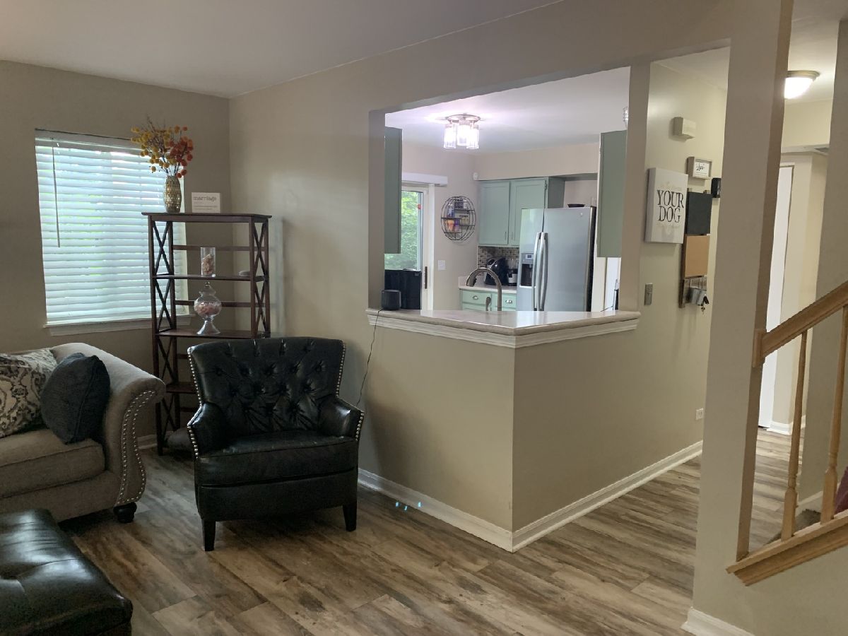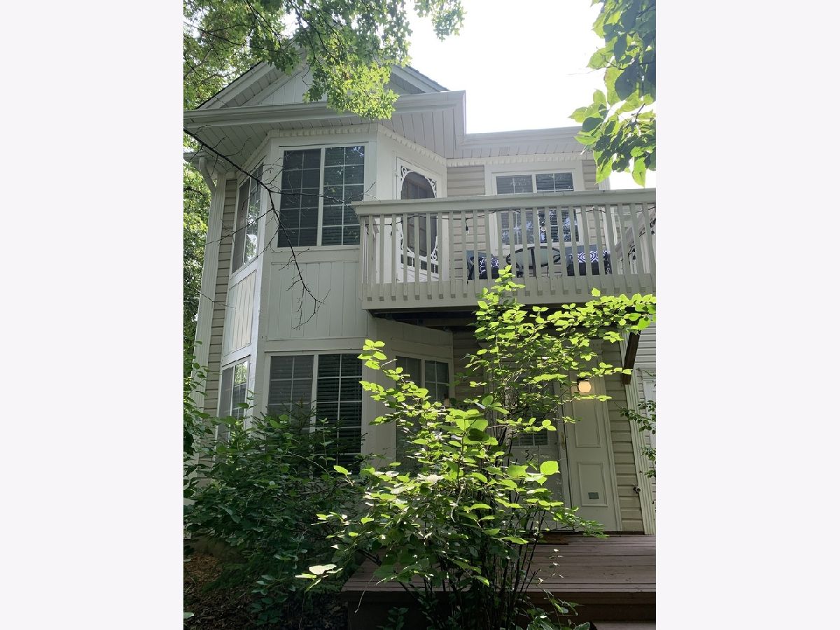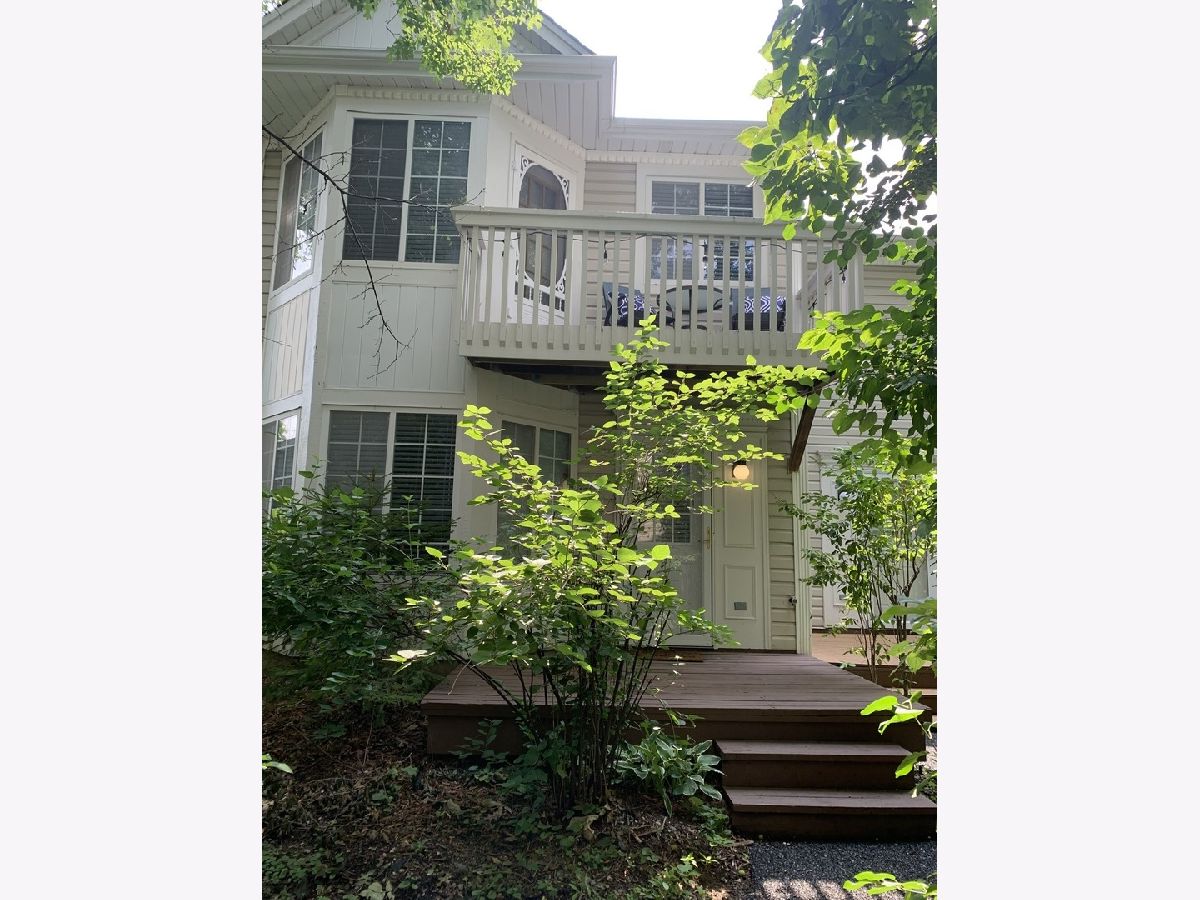 Desirable end unit surrounded by mature trees in Treehouse in the Woods neighborhood. 3 bedroom 2 1/2 bath beautifully finished unit with brand new floors throughout the first floor and new half bath. Bright eat in kitchen with tiled back splash, newer SS appliances and stone counters offers open panel to living room. Sliding glass door leads to the secluded side patio for grilling and summer enjoyment. 2nd floor features large master suite with cathedral ceilings, two walk in closets, sitting/nursing/den area, private bath and a new private balcony for a cup of coffee in the mornings or relaxing evenings with a glass of wine. 2 more large bedrooms and another full bath complete the upstairs. In unit laundry and 2 car attached garage. Closet space galore. Great area in a beautiful setting.