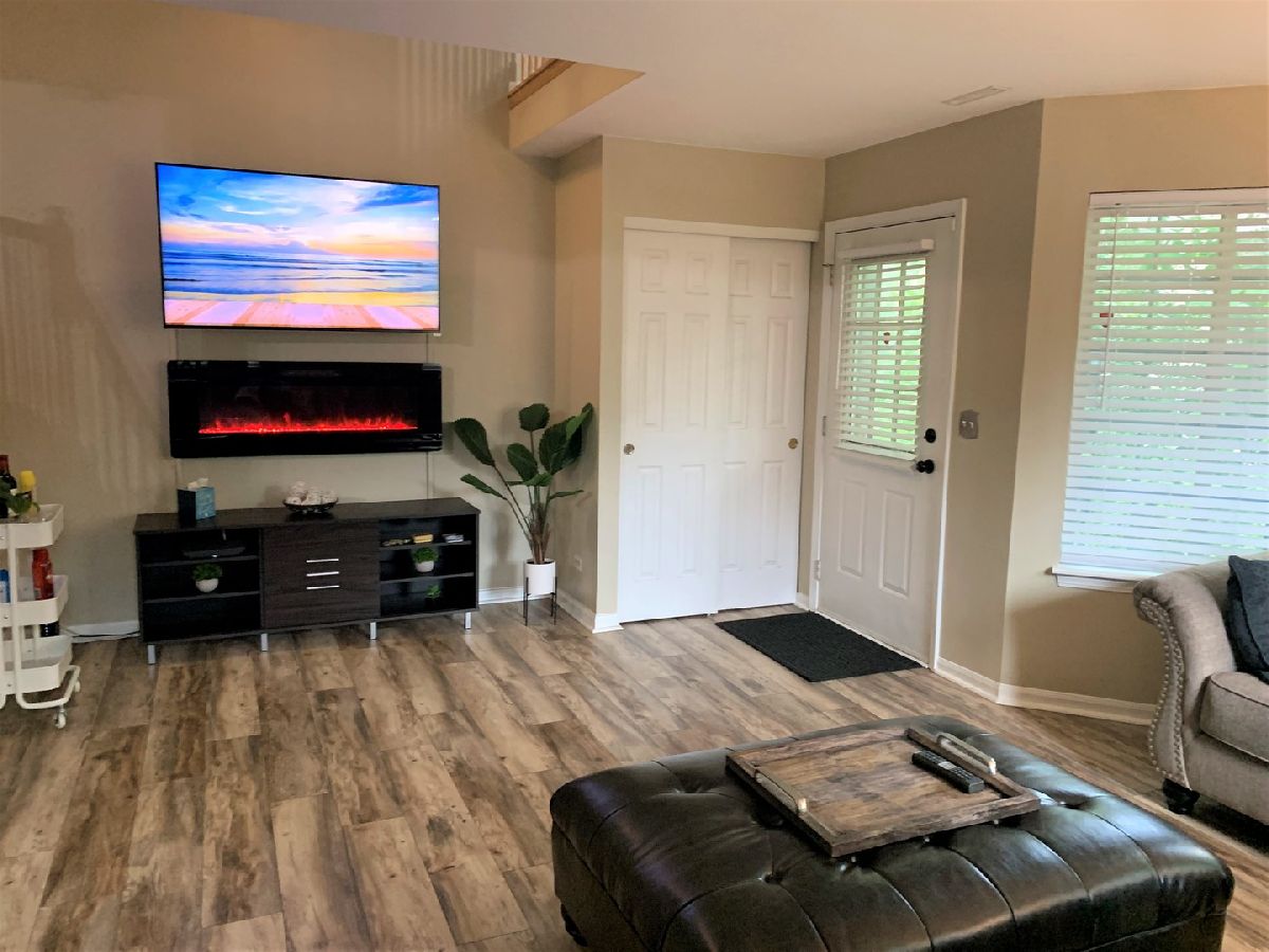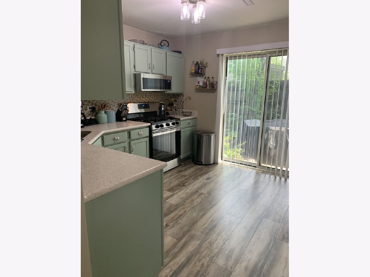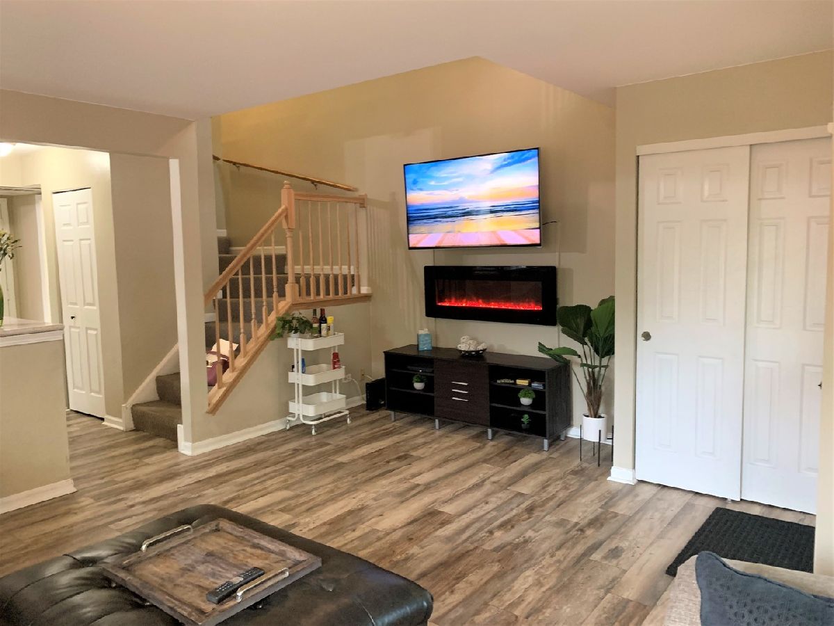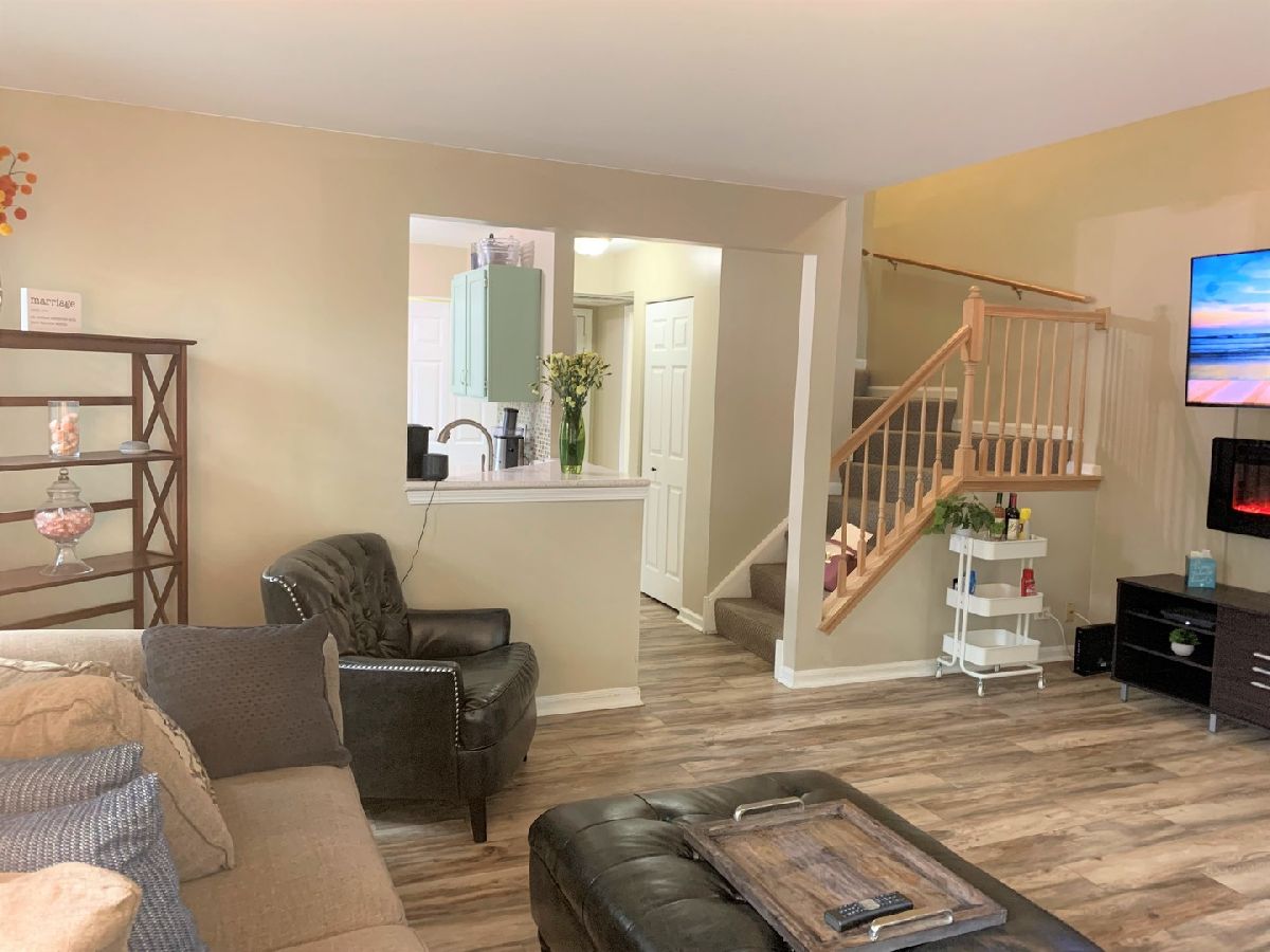 Desirable end unit surrounded by mature trees in Treehouse in the Woods neighborhood. 3 bedroom 2 1/2 bath beautifully finished unit with brand new floors throughout the first floor and new half bath. Bright eat in kitchen with tiled back splash, newer SS appliances and stone counters offers open panel to living room. Sliding glass door leads to the secluded side patio for grilling and summer enjoyment. 2nd floor features large master suite with cathedral ceilings, two walk in closets, sitting/nursing/den area, private bath and a new private balcony for a cup of coffee in the mornings or relaxing evenings with a glass of wine. 2 more large bedrooms and another full bath complete the upstairs. In unit laundry and 2 car attached garage. Closet space galore. Great area in a beautiful setting.