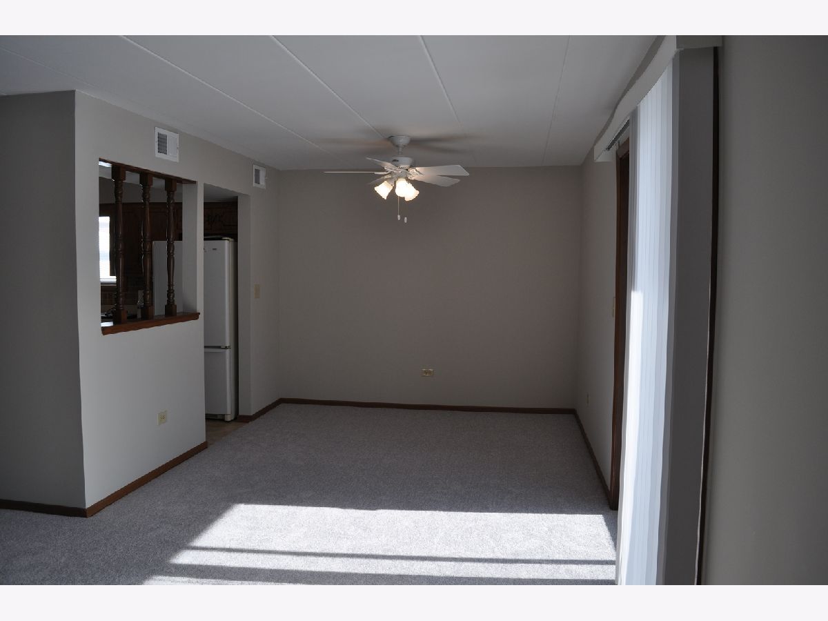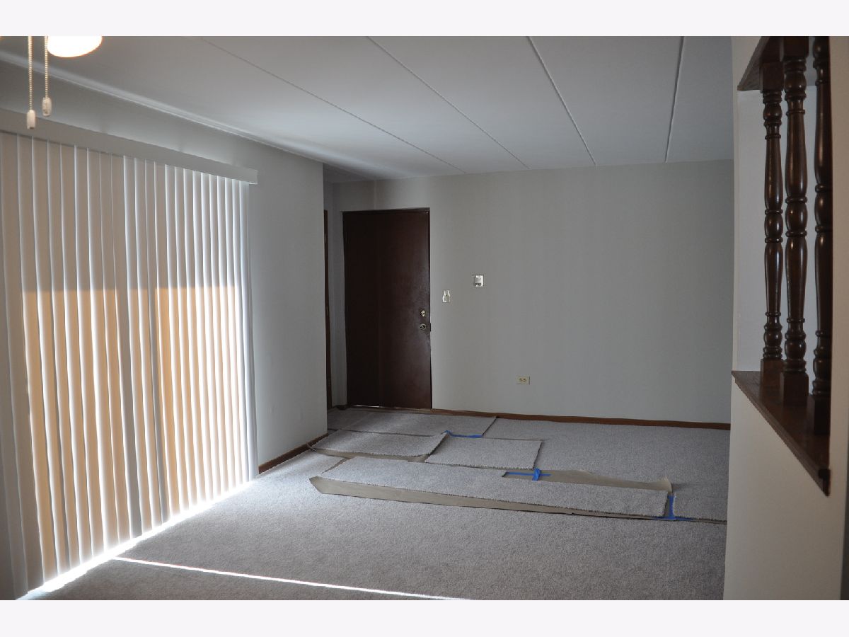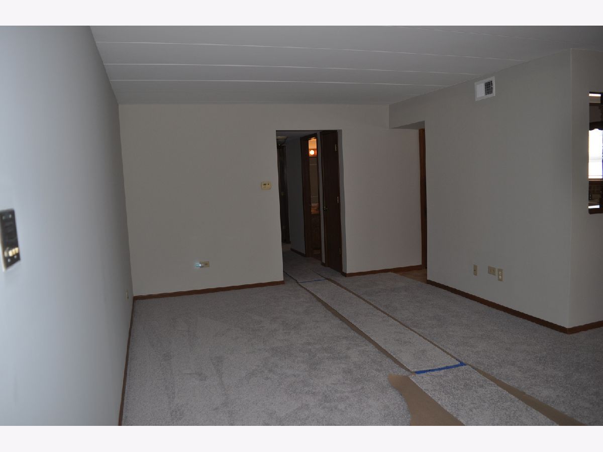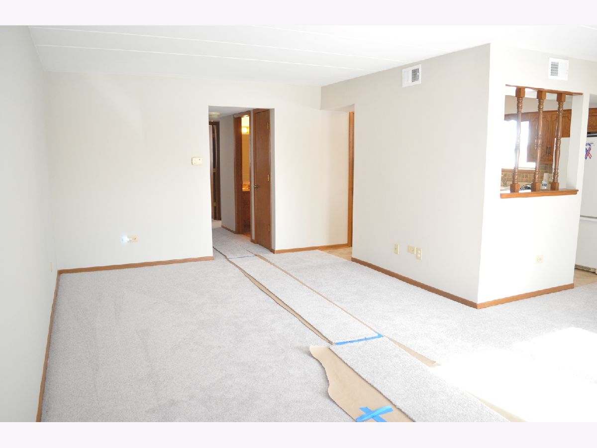 Now being offered is this beautiful 2 bedroom, 1-1/2 bathroom first floor condominium in a flexicore building. Freshly professionally painted in Sherwin-Williams paint in an inviting grey color with newly installed complimentary grey Shaw carpet. New Hunter ceiling fans with lighting have been installed. Pella windows throughout with new blinds. Bedrooms have large closets with bi-fold doors and the master bedroom includes a half bathroom. Both bathrooms have handicapped assist safety rails installed. Unit includes an in unit laundry room with washer, dryer and storage cabinets. Kitchen includes refrigerator, dishwasher and free standing stove. The kitchen has generous cabinet space and a pantry. Unit has a private screened patio on the front of the building. Unit includes a private one car garage with automatic garage door opener and 2 remotes as well as 1 assigned outdoor parking space. Exterior and interior common area surveillance cameras included in association fees. Close to trails, park, elementary school and shopping. Convenient to Metra train station and Interstate 80 access. This unit is currently vacant and in move in ready condition. Easy to show. Possession on closing. Shoes to be removed before entering unit.