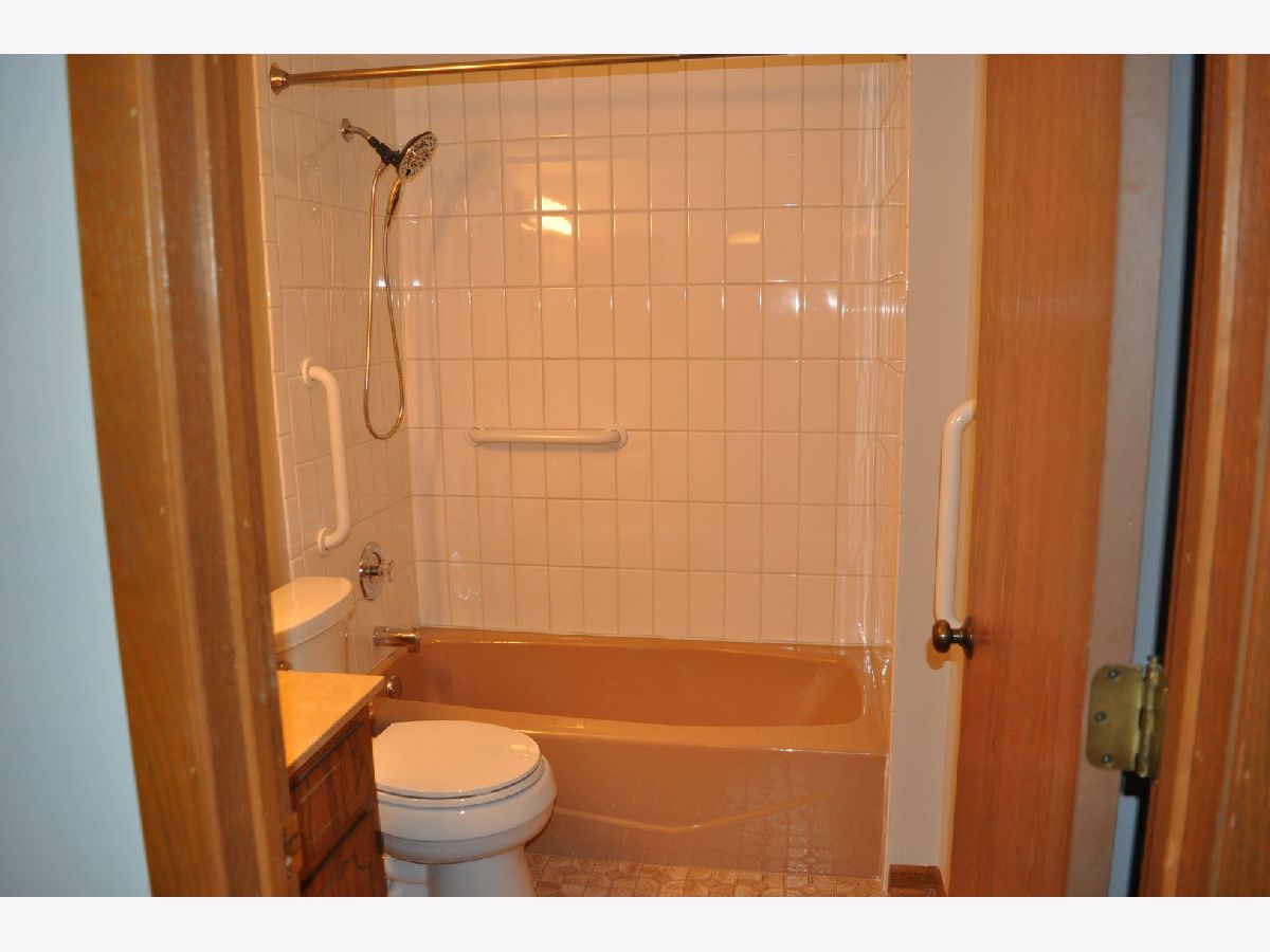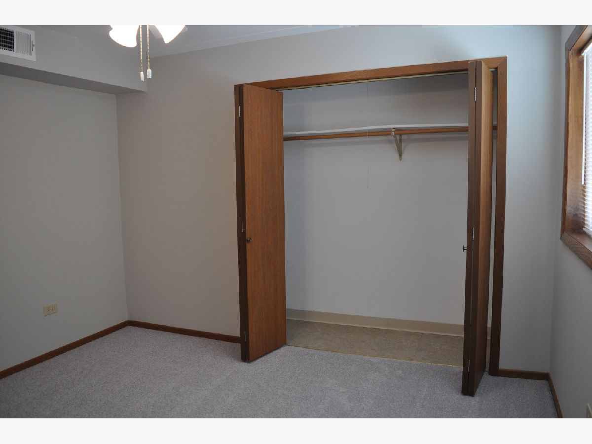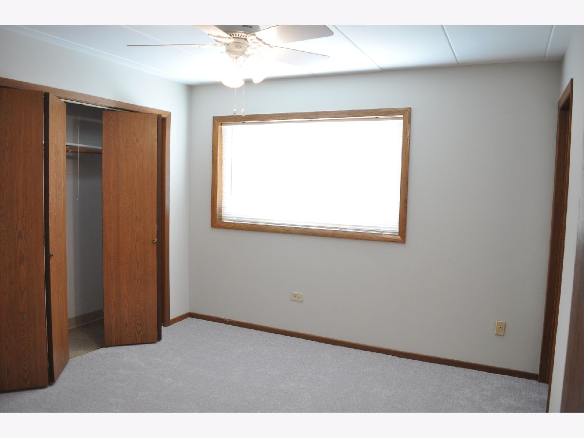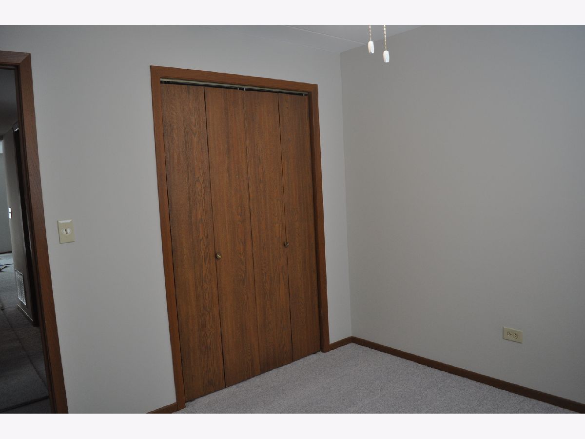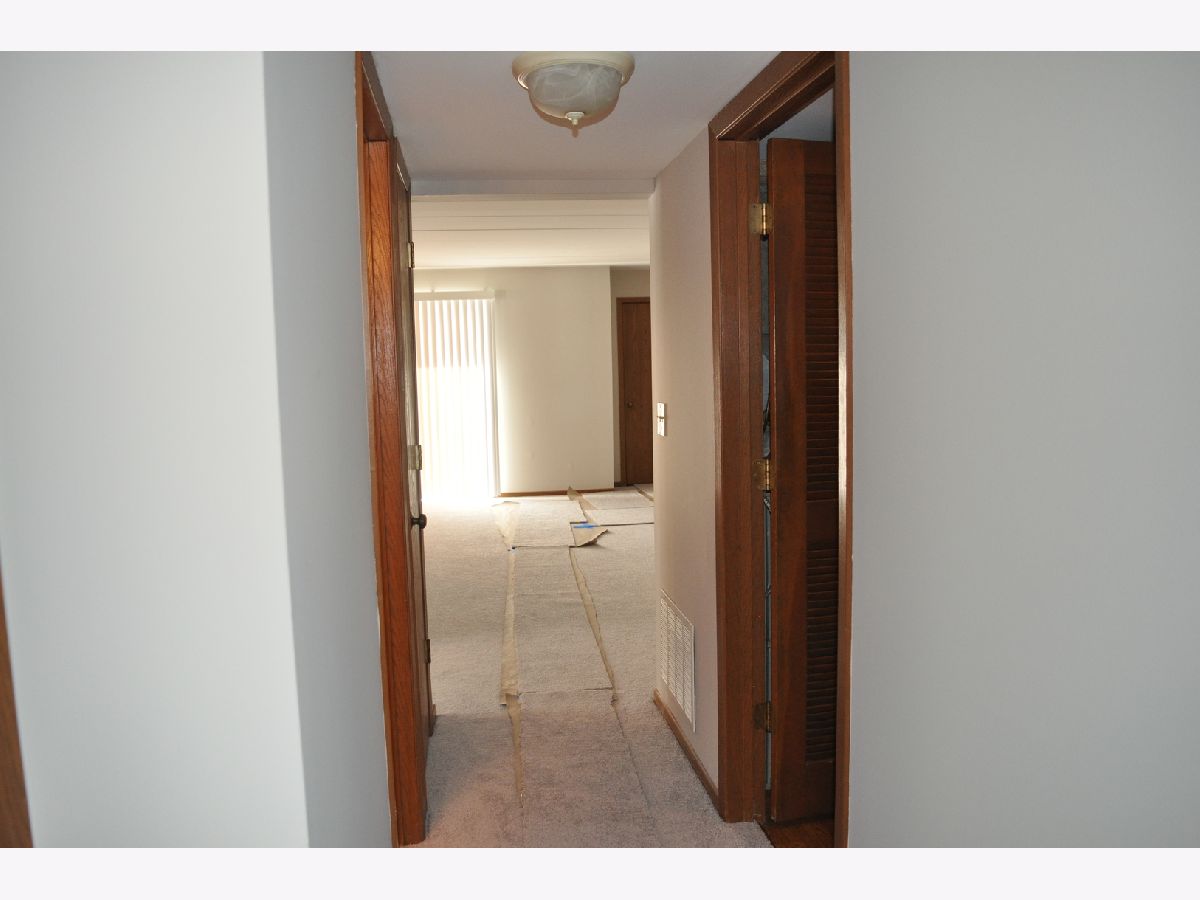Now being offered is this beautiful 2 bedroom, 1-1/2 bathroom first floor condominium in a flexicore building. Freshly professionally painted in Sherwin-Williams paint in an inviting grey color with newly installed complimentary grey Shaw carpet. New Hunter ceiling fans with lighting have been installed. Pella windows throughout with new blinds. Bedrooms have large closets with bi-fold doors and the master bedroom includes a half bathroom. Both bathrooms have handicapped assist safety rails installed. Unit includes an in unit laundry room with washer, dryer and storage cabinets. Kitchen includes refrigerator, dishwasher and free standing stove. The kitchen has generous cabinet space and a pantry. Unit has a private screened patio on the front of the building. Unit includes a private one car garage with automatic garage door opener and 2 remotes as well as 1 assigned outdoor parking space. Exterior and interior common area surveillance cameras included in association fees. Close to trails, park, elementary school and shopping. Convenient to Metra train station and Interstate 80 access. This unit is currently vacant and in move in ready condition. Easy to show. Possession on closing. Shoes to be removed before entering unit.